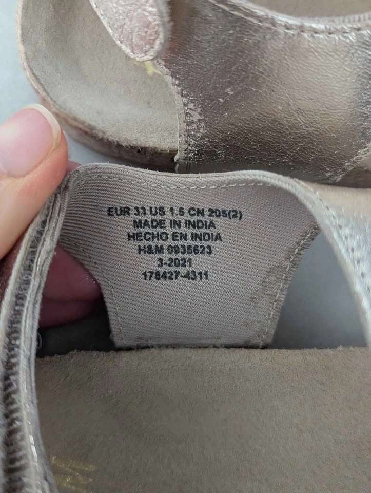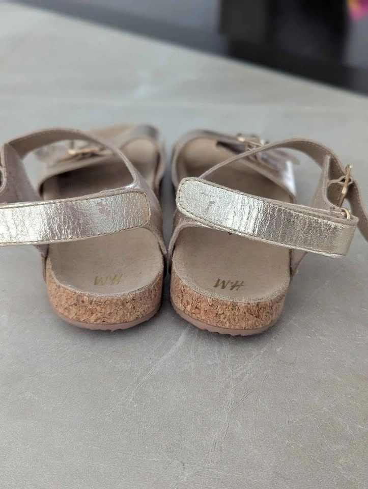 H&M Kids Gold Sandals US 1.5 EU 31 Leather Cork Sole Buckle Summ