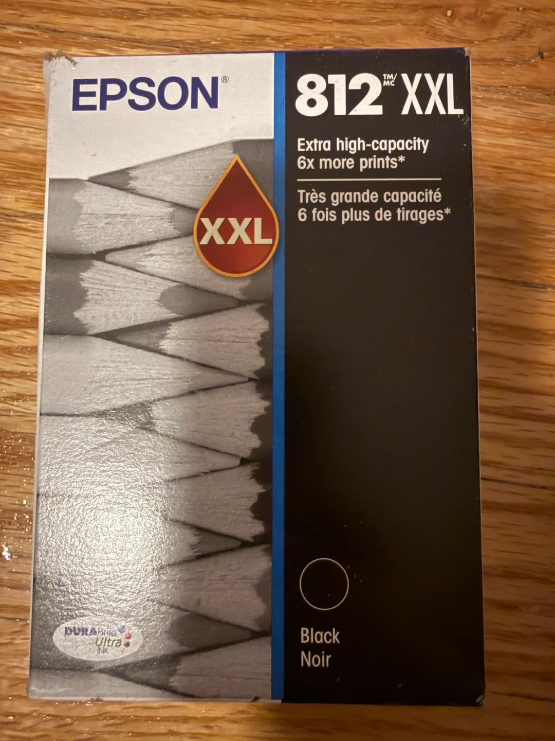 This is an extra high-capacity Epson 812 XXL black ink cartridge. It's designed for 6x more prints. This DuraBrite Ultra Ink is great for sharp text and vibrant images.