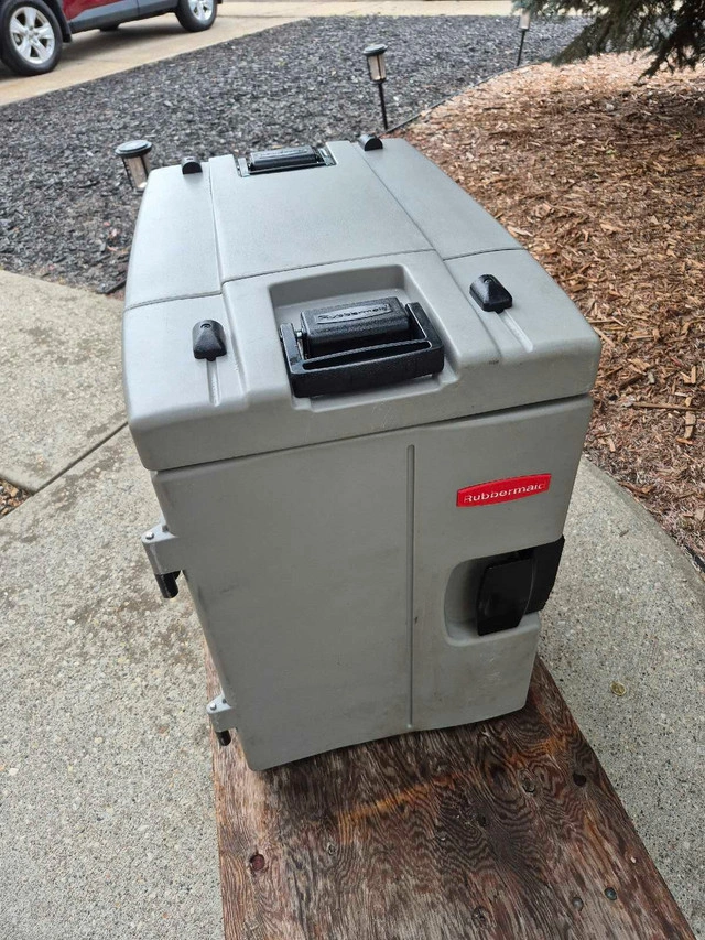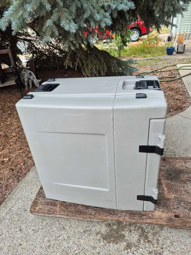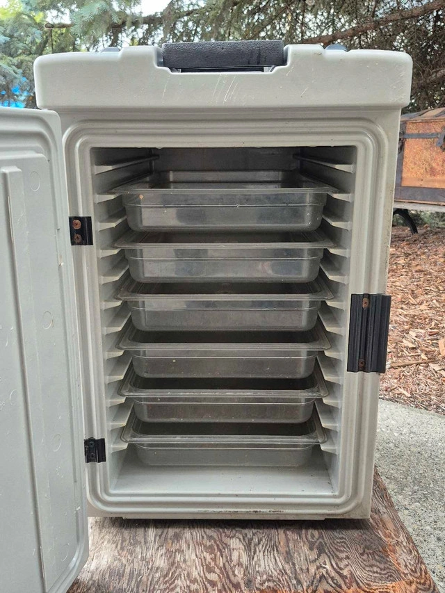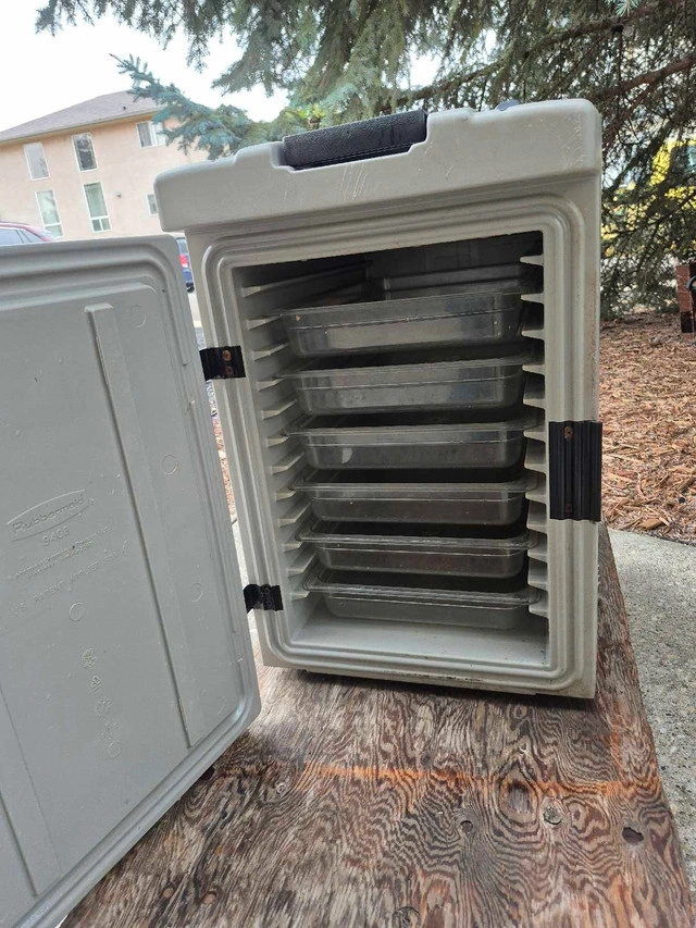 Heavy-duty commercial insulated food box. Clean and solid. Latch works/seals but moving part is worn (replacement available). Used in a bakery for cinnamon bun storage, stationary unit (no wheels). Price: $299 (box only. No pans) Optional: 6 Cambro 12CW full-size food pans for $75 extra (worth ~$150 new). New units cost $1,000+ without pans. Great for catering, bakeries, events, or community kitchens. Located in Edmonton. Can help load. If this ad is up, it’s still available.