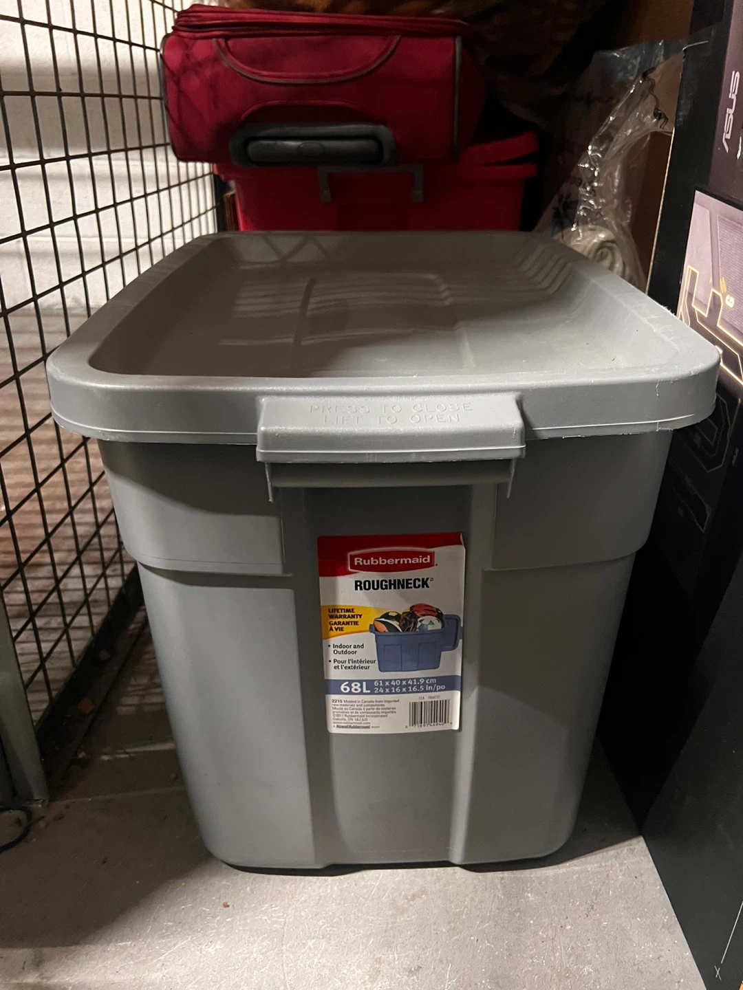 Selling a Rubbermaid Roughneck storage tote in great condition! It's a durable and reliable option for all your storage needs. This 68L tote is perfect for organizing items in your home or garage. It features a tough construction to withstand wear and tear, ensuring your items stay safe and secure.