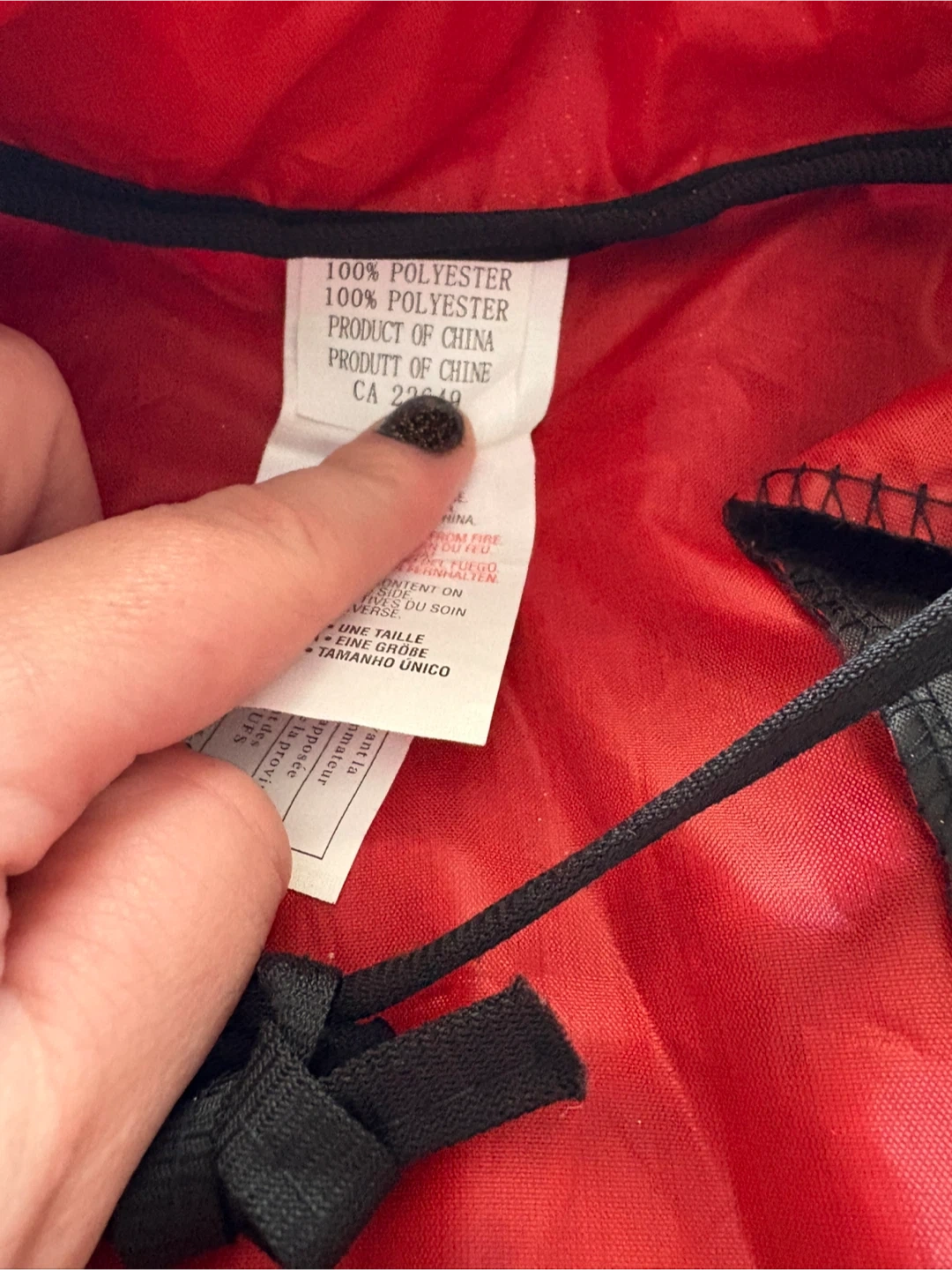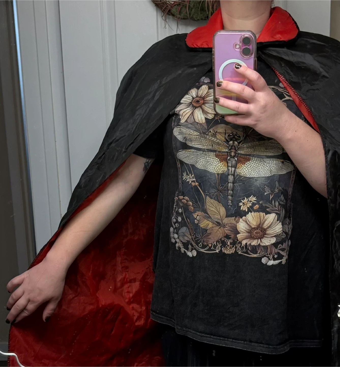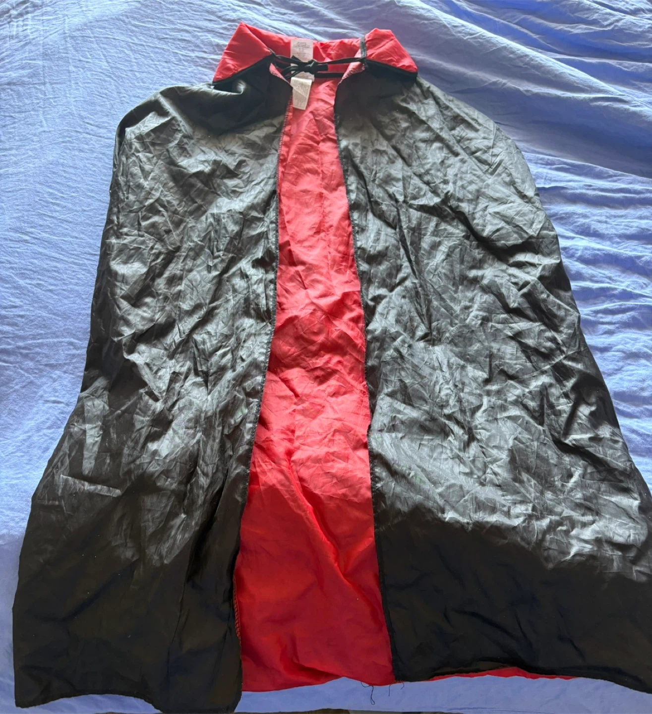 Selling a vampire cape, perfect for costumes or dress-up! It's black on the outside and red on the interior - Brand: Rubie's - Size: One Size - Material: 100% Polyester