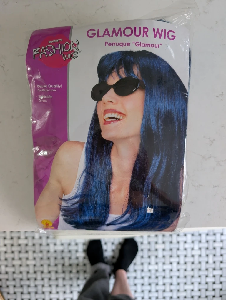 226Selling a Rubie's Glamour Wig in blue! It's deluxe quality and washable. Originally priced at $18.99. Perfect for costumes or dress-up! Never worn because the costume idea changed!!