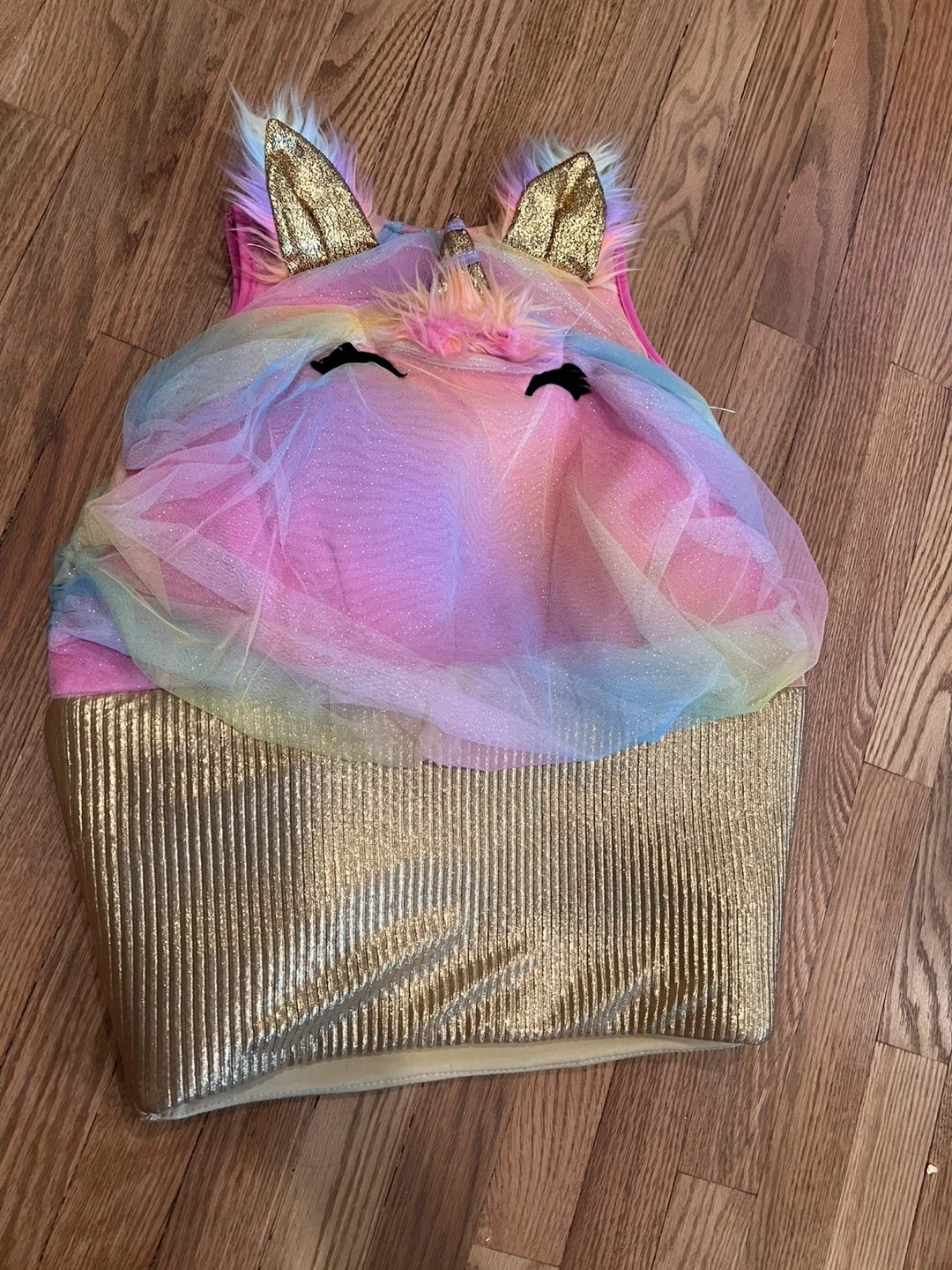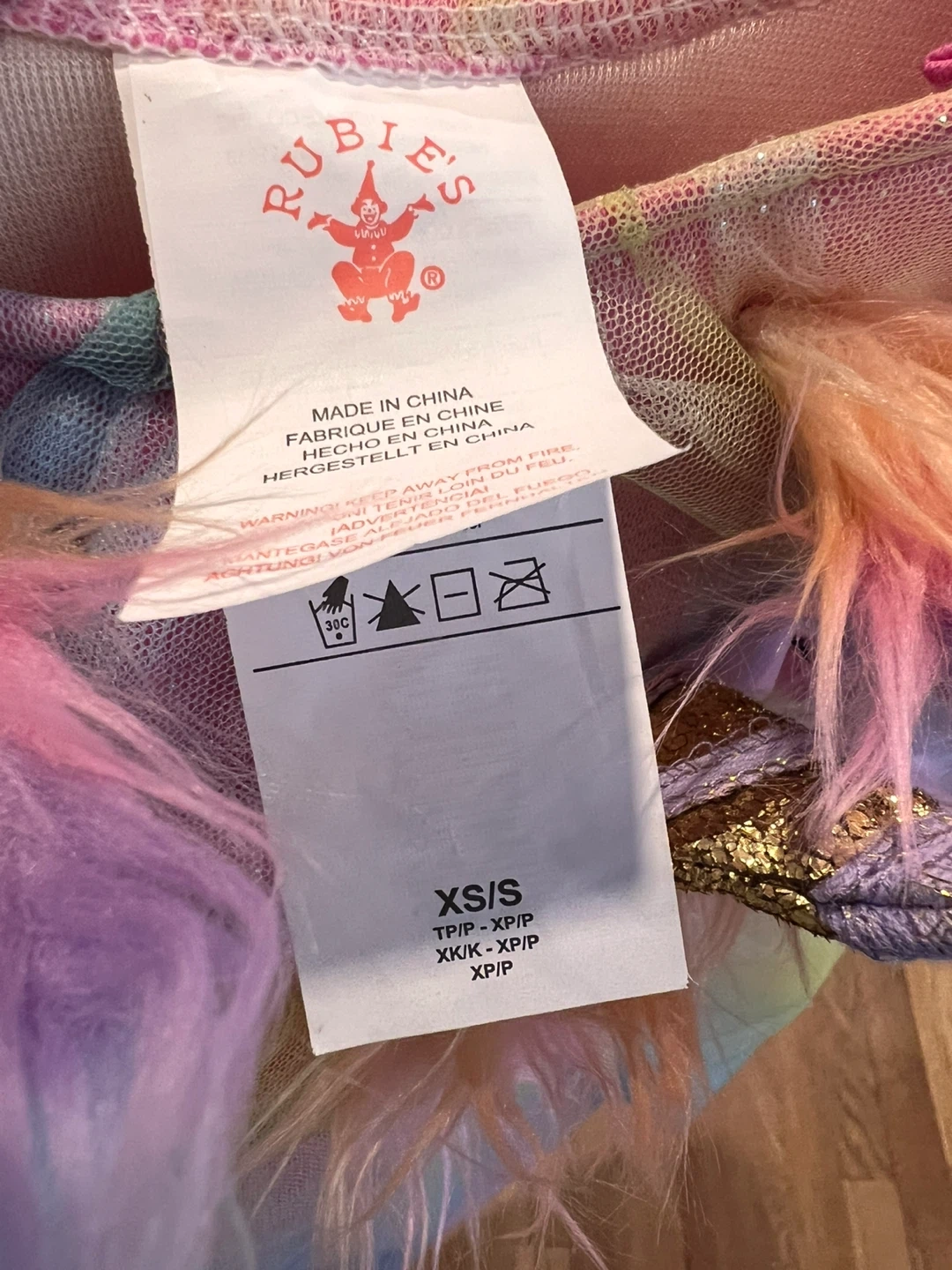 15Selling a cute Rubie's unicorn costume! It's a size XS/S and features a colourful, sparkly design with a gold base. Perfect for dress-up or Halloween!