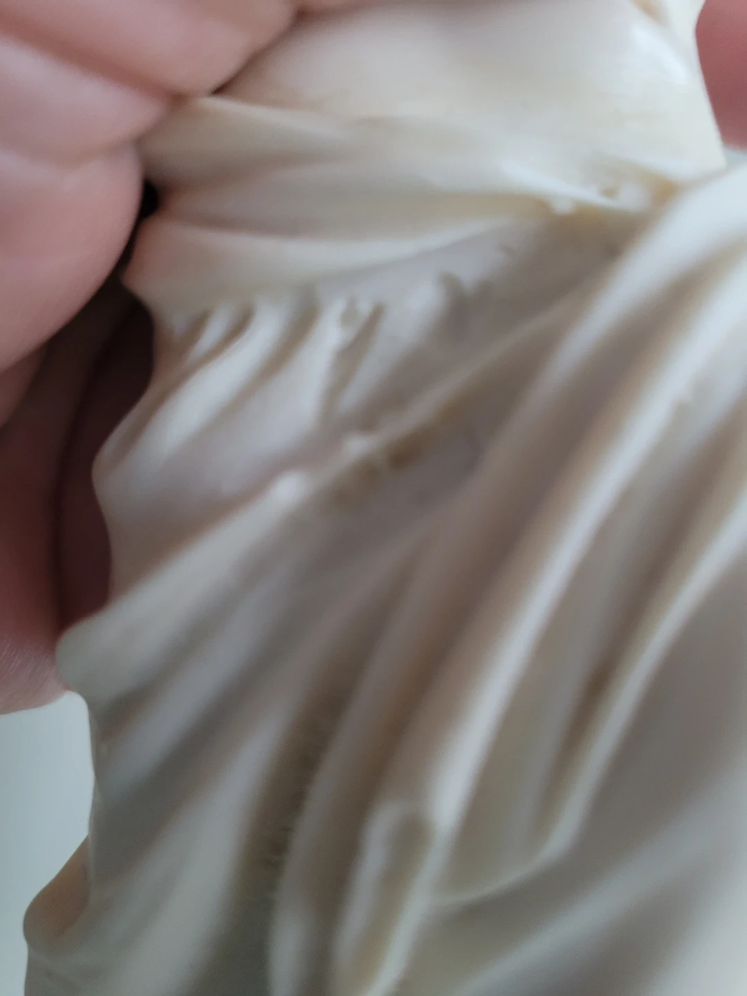 There is a tiny chip on cloth folds, not noticeable, see last picture.