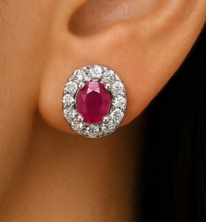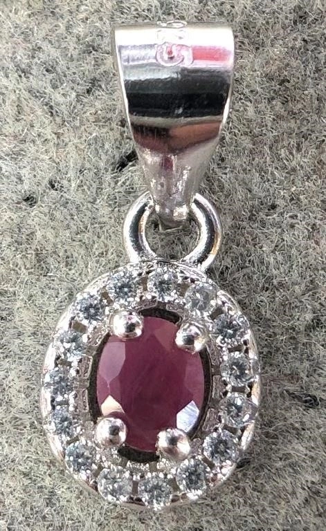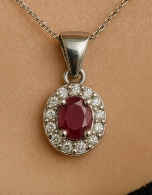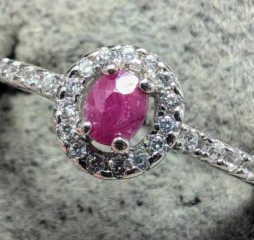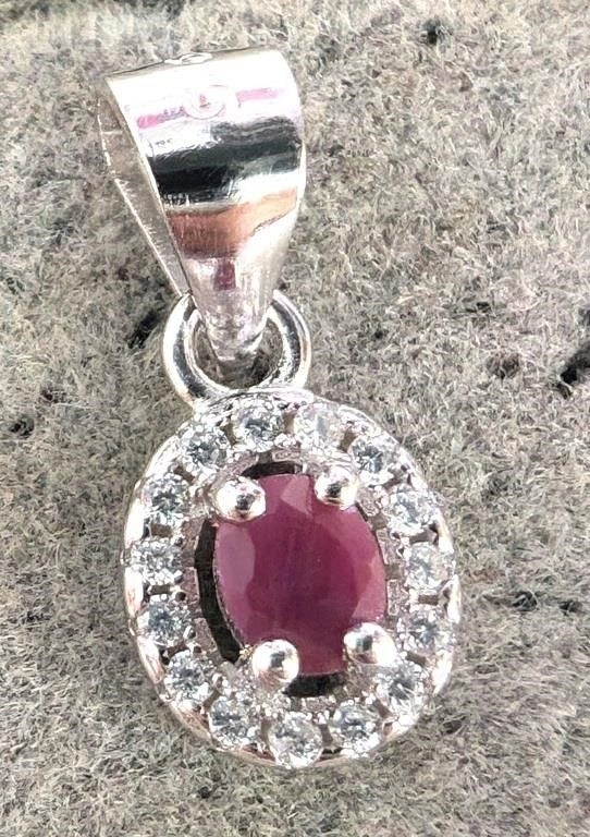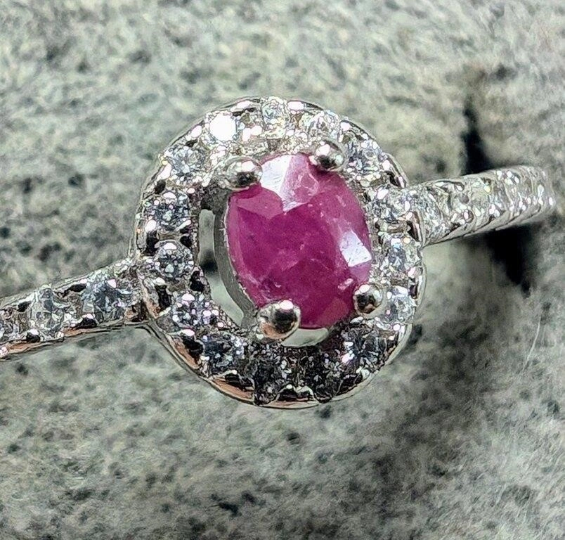 Beautiful ruby ring surrounded by a halo of diamonds. This elegant piece would make a lovely addition to any jewellery collection! Selling a ring with matching earrings & pendant.
