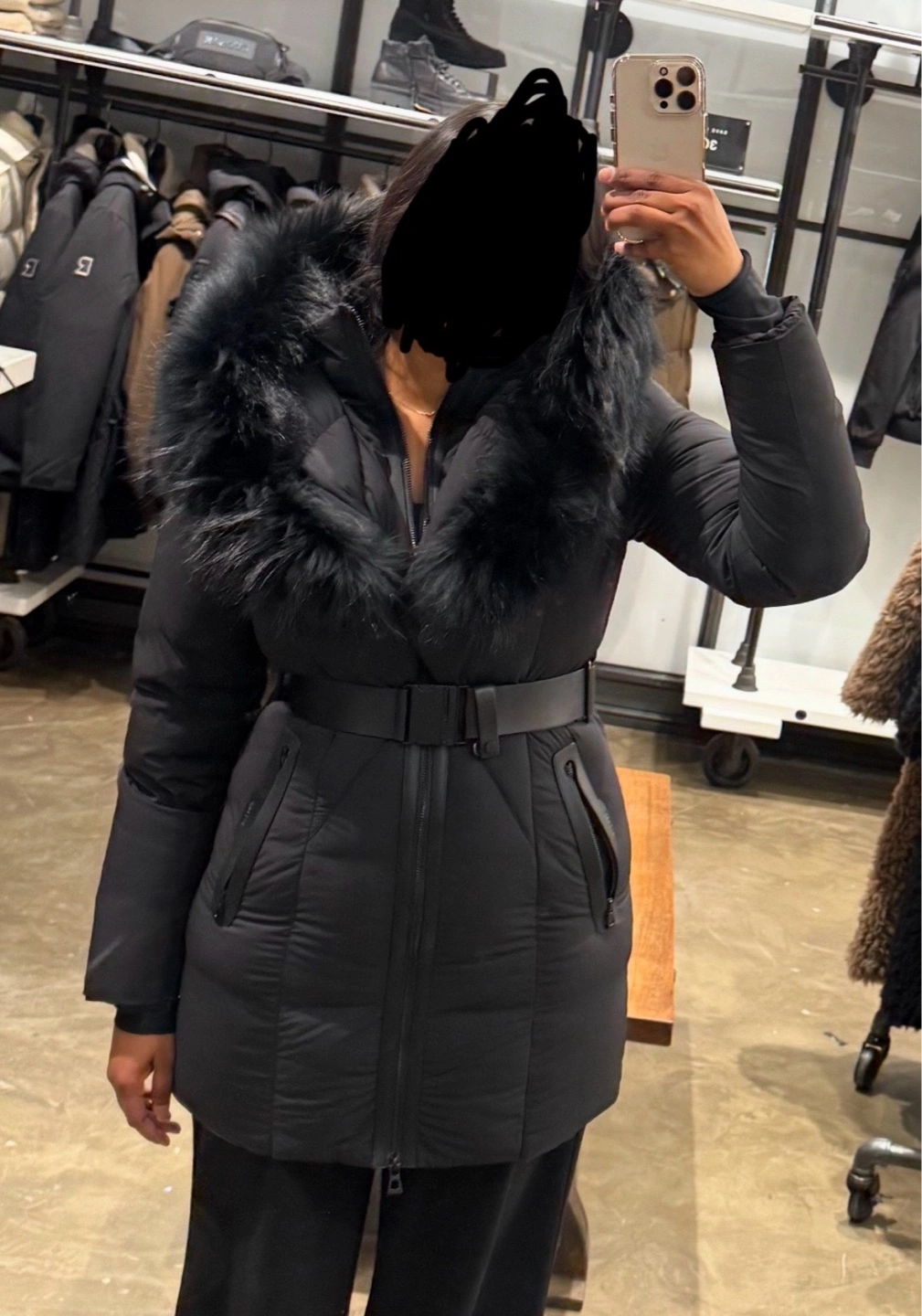 1.rudsak black down jacket- very warm 2.with real fur 3.temperature- upto -25 4.got it for 900$ originally on dec 2024. 5.used only 2 times.not the right size for me 6.price is firm 7.size-small