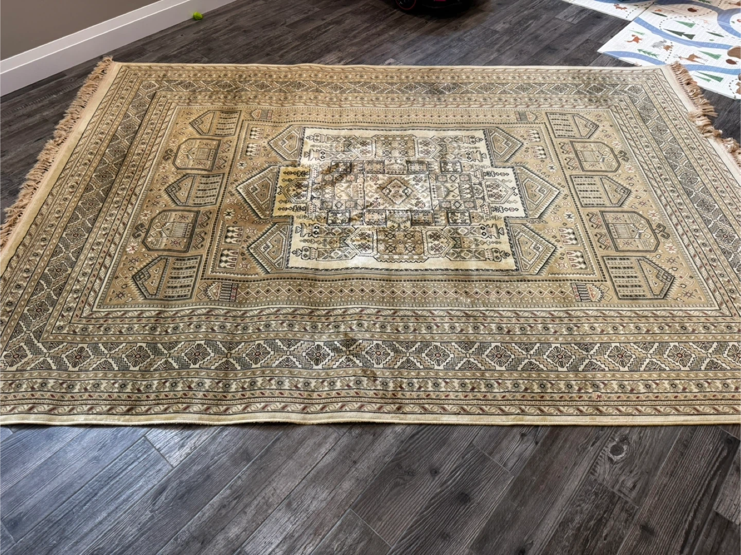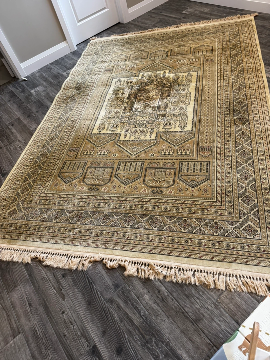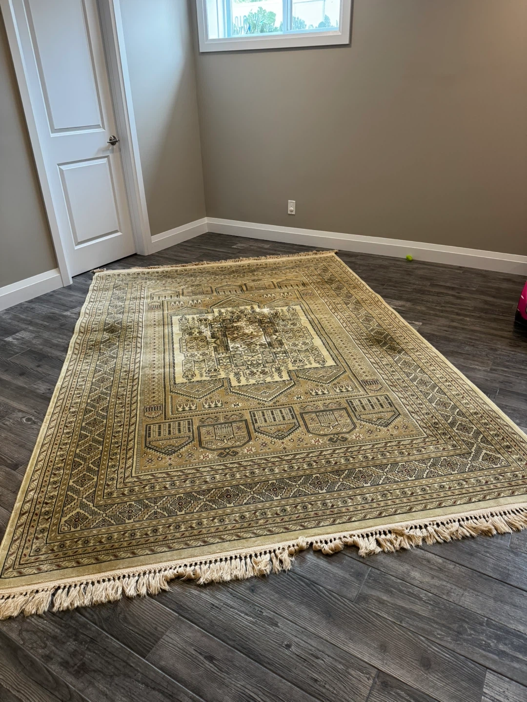 Selling an Oriental rug in black. It's a rectangle shape and would look great in any room of the house!
