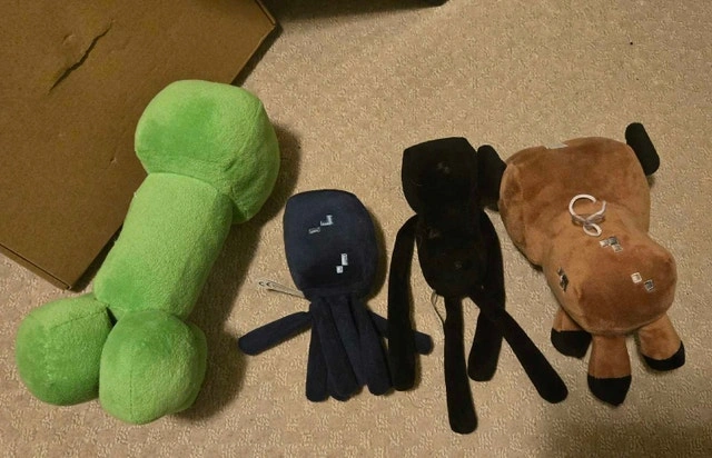 Creeper $10. Squid $5. Enderman $10. Cow $5. Located in Stony Plain. Can meet in Millwoods during weekdays around 3:45pm or potentially west end around 4pm.