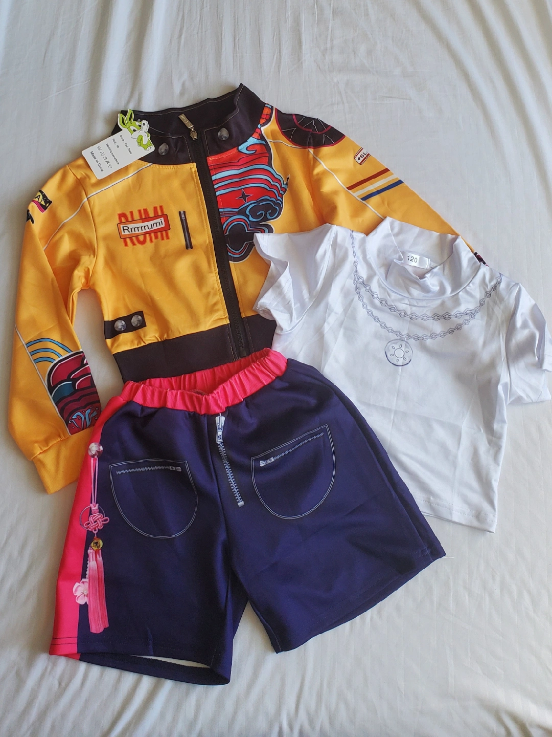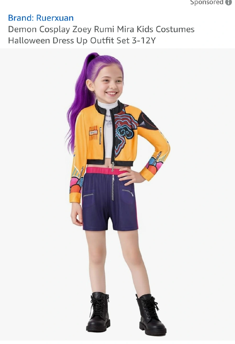 Rumi KPop Demon Hunters Cosplay Kids Costumes Halloween Dress Up Outfit Set. This set includes a jacket, shorts, and a top. The size is 120 (5-6 years). Perfect for dress-up or Halloween! New never used Pick up Hespeler Cambridge