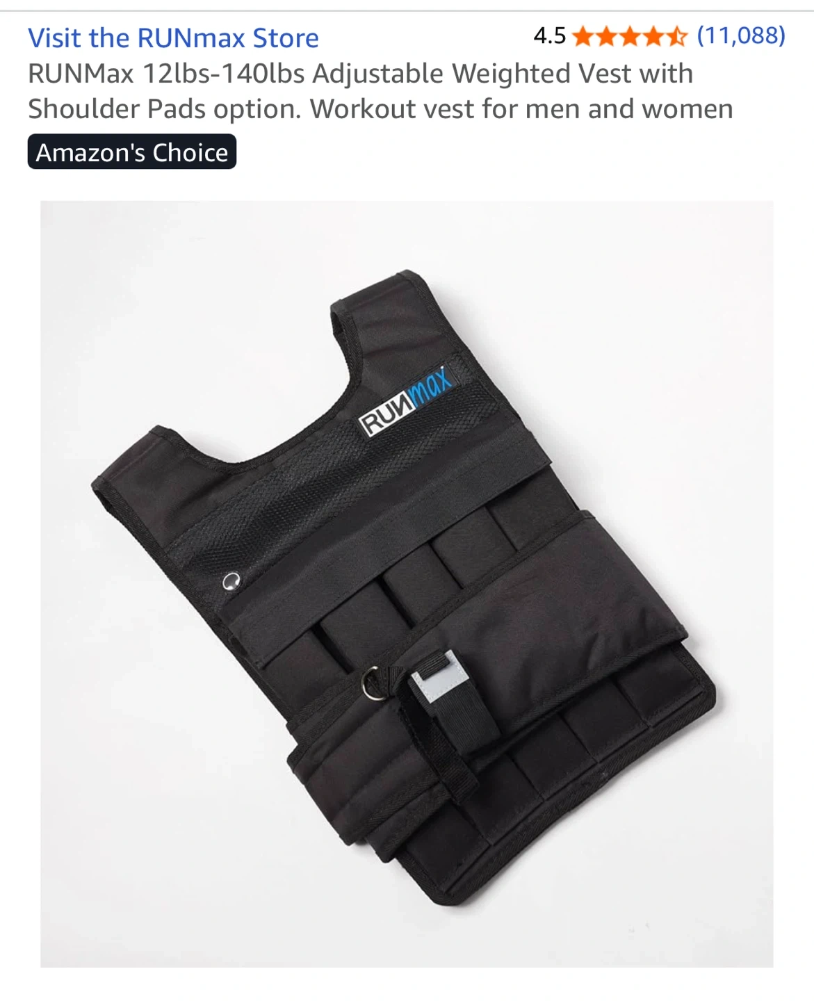 Selling a RUNMax adjustable weighted vest, perfect for adding resistance to your workouts! It's adjustable from 12lbs to 140lbs, so you can customize the weight to your fitness level. The vest also features shoulder pads for added comfort during your training sessions