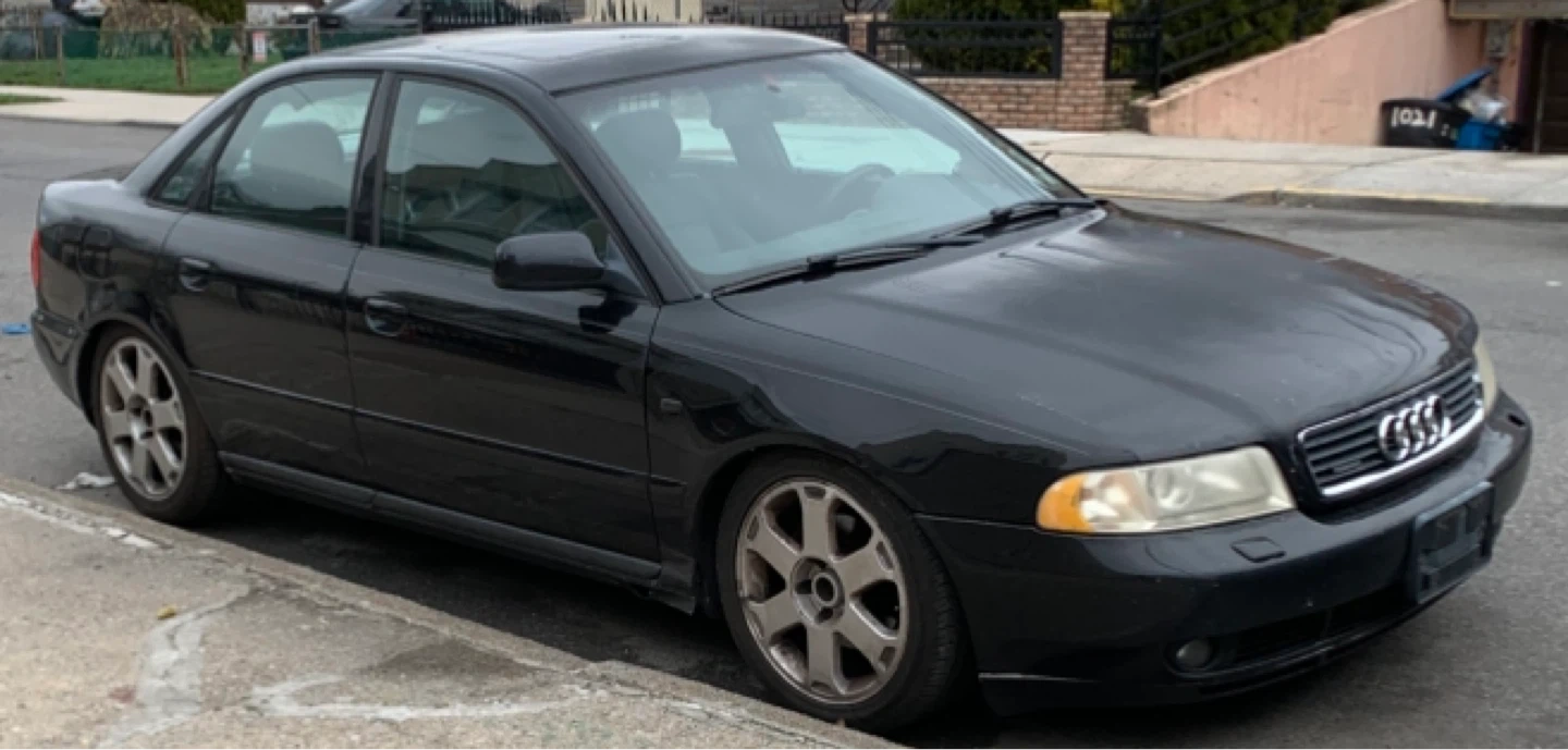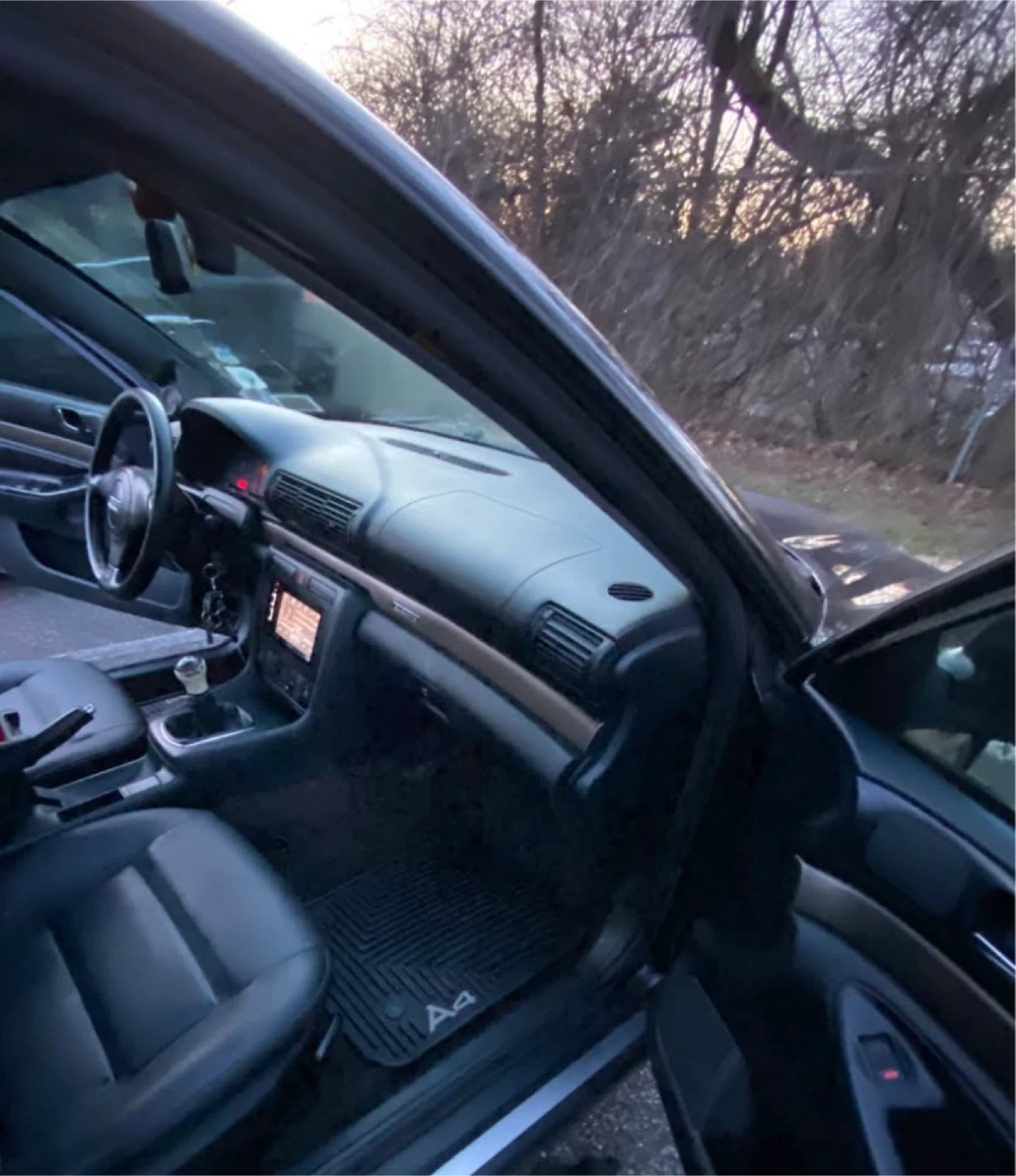 Black Audi A4 Quattro sedan. Features a manual transmission and leather interior. It has an aftermarket boost gauge on the dash.
