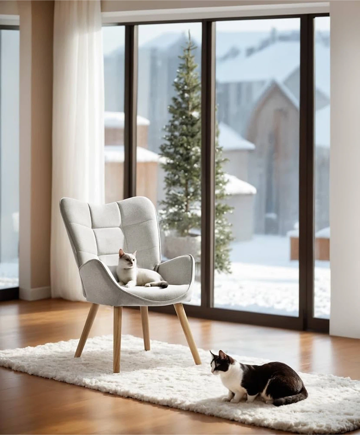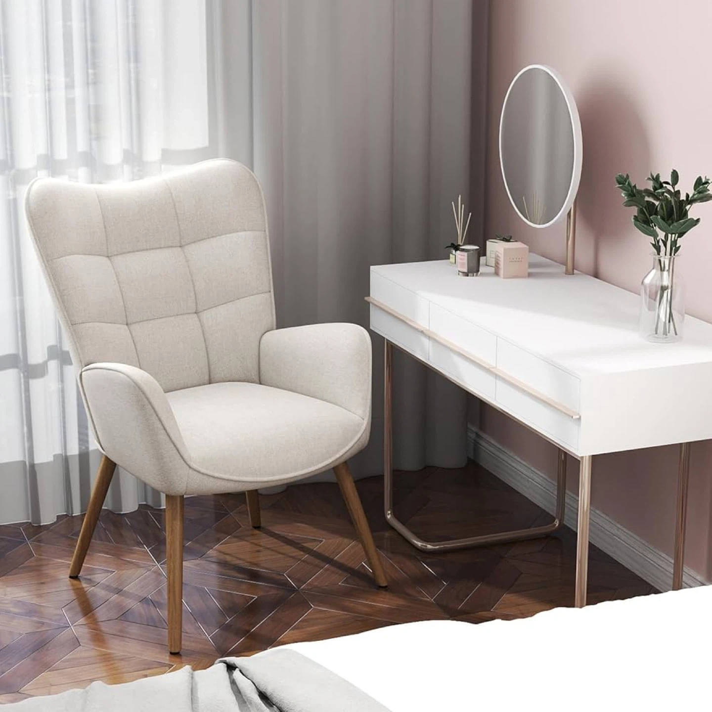 Living Room Accent Chair Leisure Chair - Nursery Armchairs with Tufted Upholstery Wing Mid Back Solid Wood Legs, Beige Fabric Oak Wood