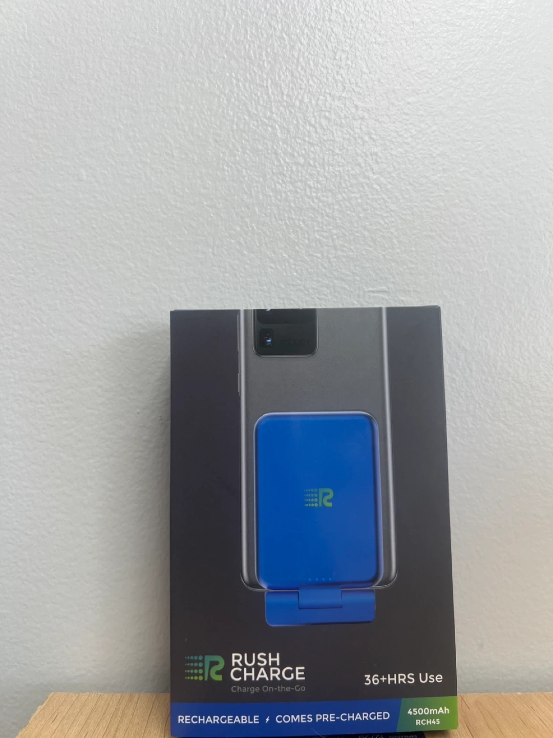 92Selling a brand new Rush Charge On-the-Go for Android USB Type-C! It's rechargeable and comes pre-charged. The box indicates 36+ hours of use and a 4500mAh battery. For more information, you can visit www.rushcharge.com