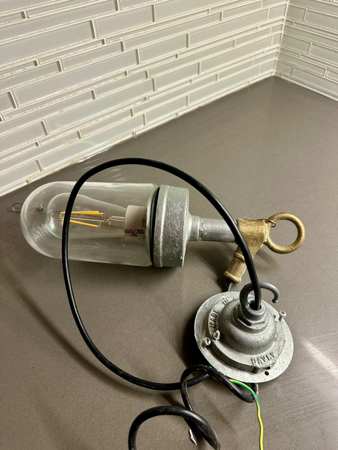 An original Davey factory wall /ceiling light. Perfect condition just taken down. Wires into any standard socket & takes standard bulbs. Made in England. Indoor outdoor.