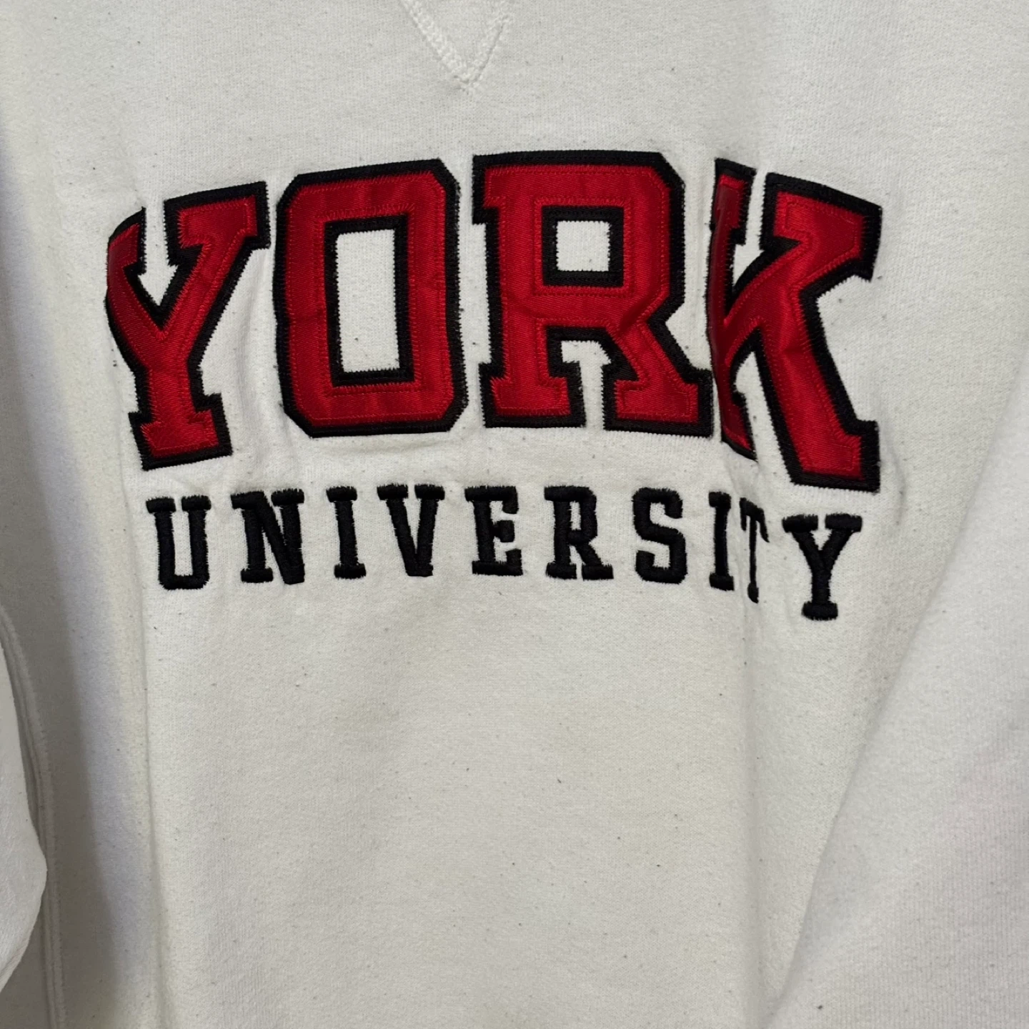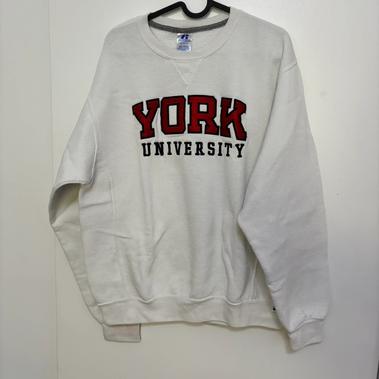 31Cozy Russell Athletic sweatshirt featuring York University in red lettering! It's a size medium and made from a blend of 50% cotton and 50% polyester