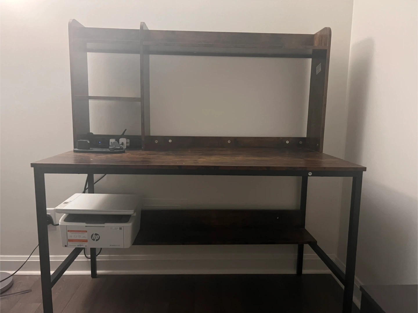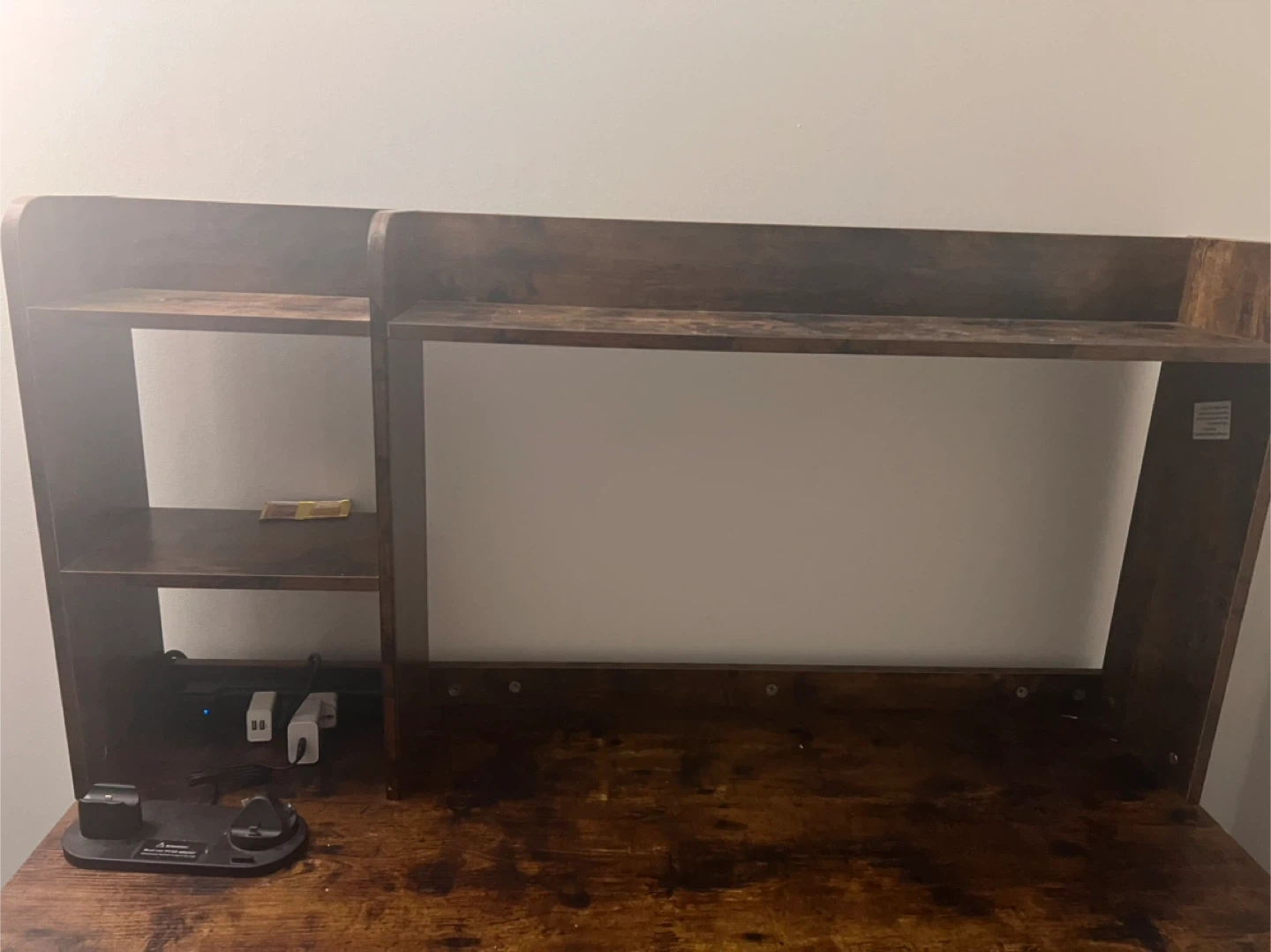 10Selling a lovely rustic brown desk with a hutch! It's in great shape and would be perfect for a home office or study space. It features shelving on the hutch for extra storage and organization. A great addition to any room! dimension- 60 inches wide