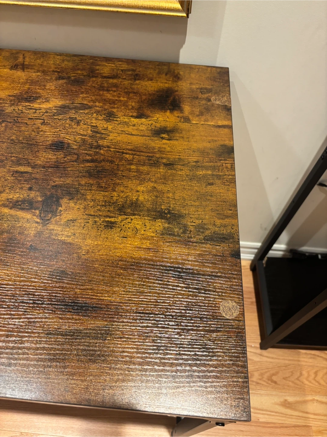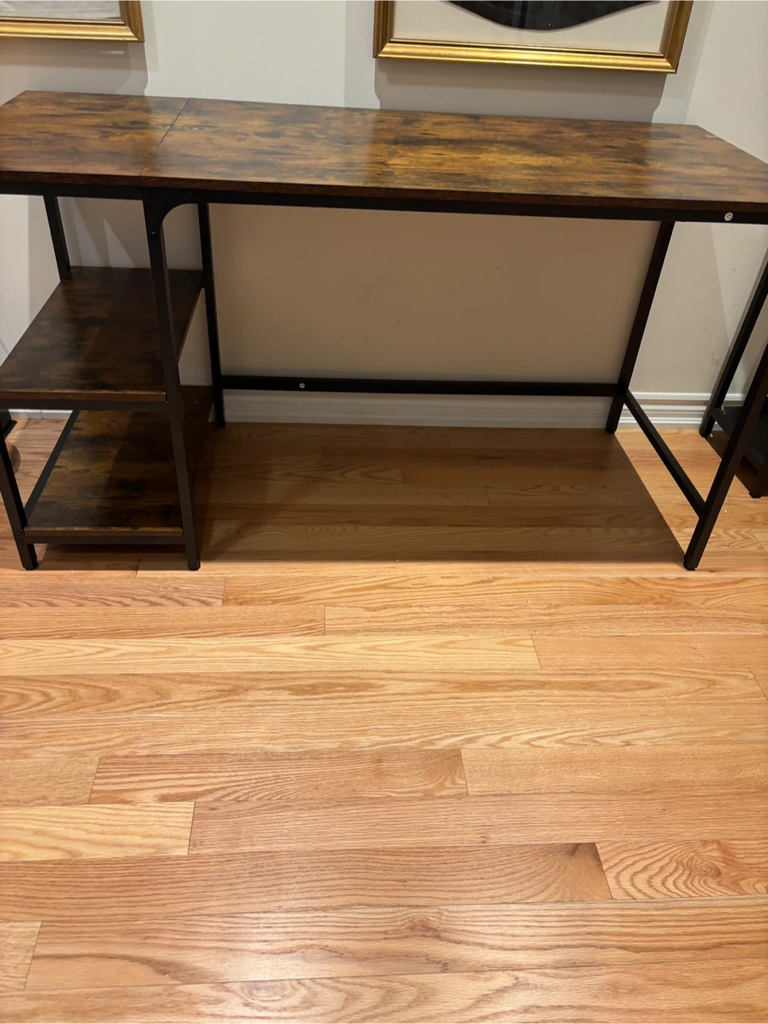 204VASAGLE desk! has a really nice rustic brown finish. The dimensions are 55.1" x 23.6" x 29.5", making it a good size for a home office or study space. It also has handy shelves on the side for extra storage. Available for pickup and delivery