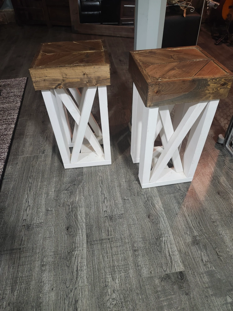 Sturdy and Solid Great Shape White with stained tops 12-1/2 x 12-1/2 x 25" high