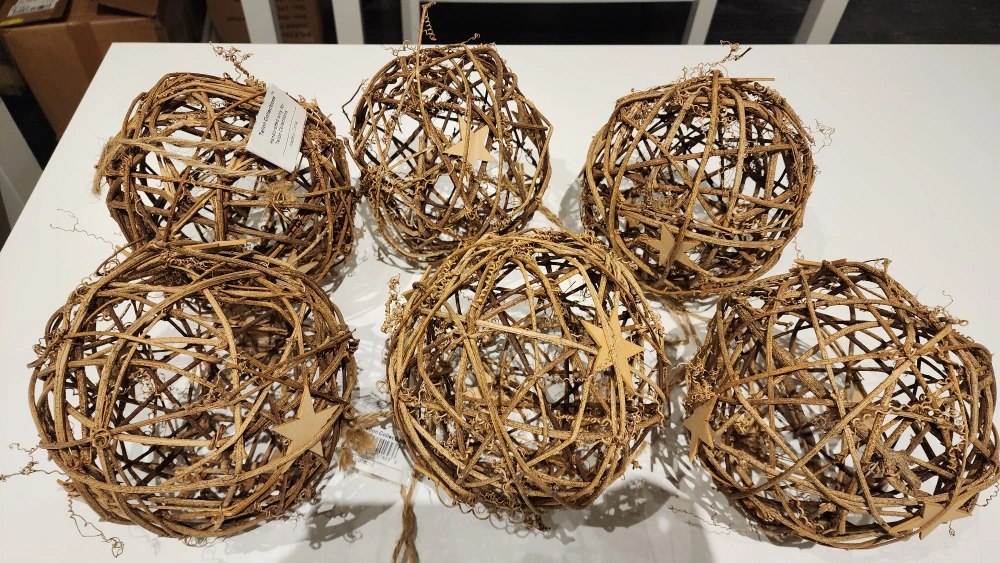 125Handcrafted-style grapevine ball with charming wood star accents. Light and airy, perfect for fall decorating, hang them on hooks, use them in baskets, centerpieces, or mantle displays. Adds a rustic, cozy touch to any space. Brand new! 📏 Approx. 7.5” (19 cm) diameter 🌾 Lightweight with jute hanging loop 🍁 Great for fall, Thanksgiving or year-round rustic decor ✨ 6 pieces available Originally sold in our shop for $9.95+tx 💫 Bundle deals option ✨ Check out my other listings for a BUNDLE OFFER! We’ve recently closed our small business after 3.5 amazing years. Now we’re selling lots of beautiful items from our shop and office, ready for their next chapter! Thanks for supporting local. *Pick up options: City Place, Canoe Landing Park