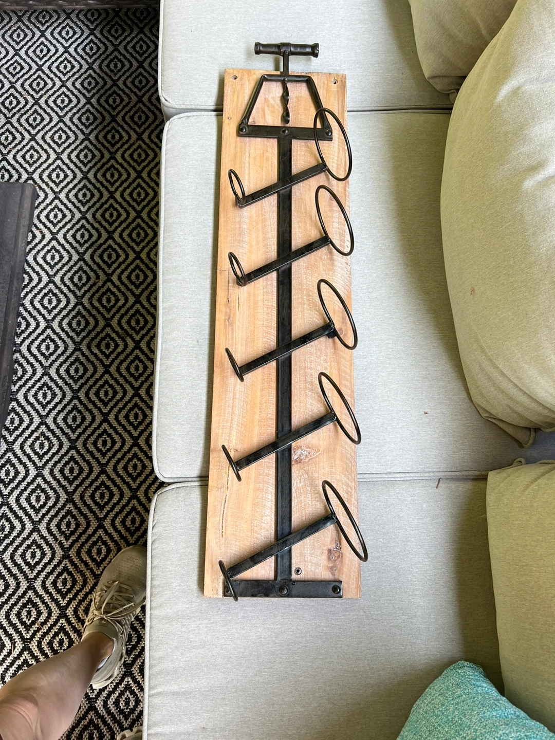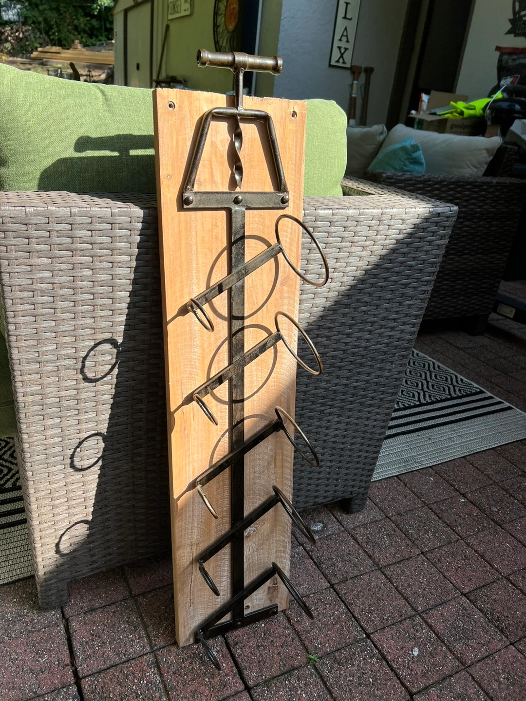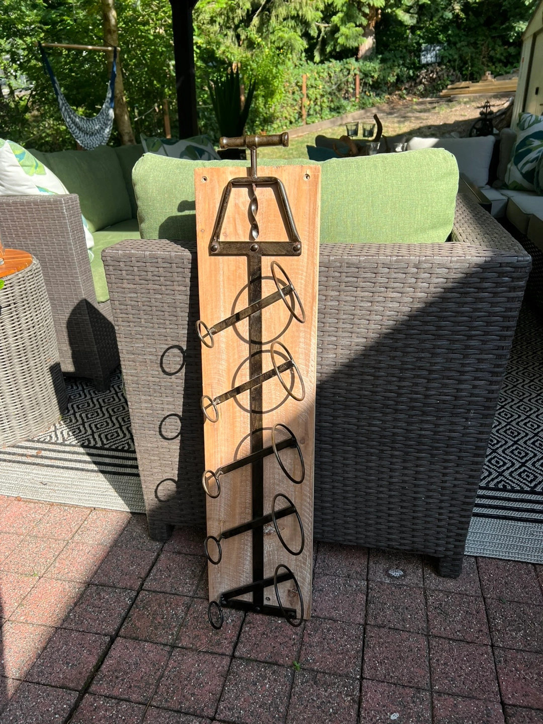 23Selling a rustic wine rack made of wood and metal! It's a stylish way to store your wine bottles and add a touch of charm to your home. Perfect for small spaces or anyone who wants to display their wine collection in a unique way