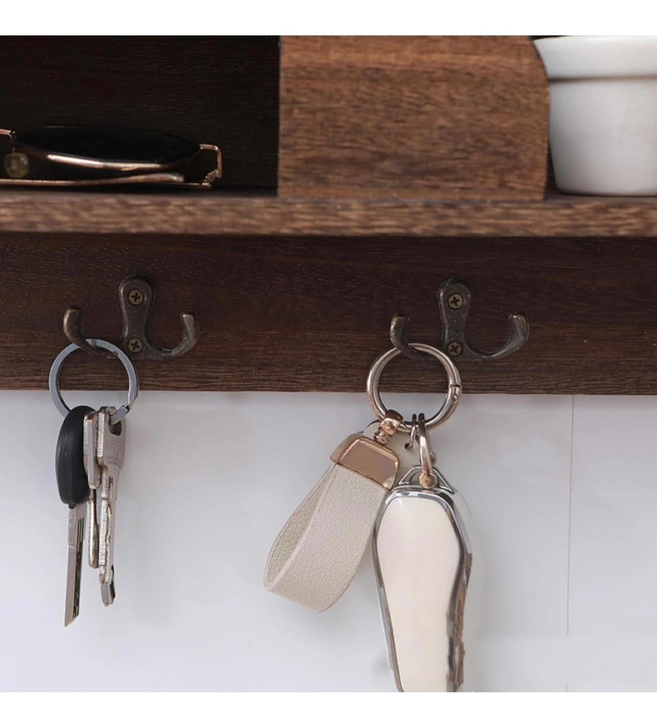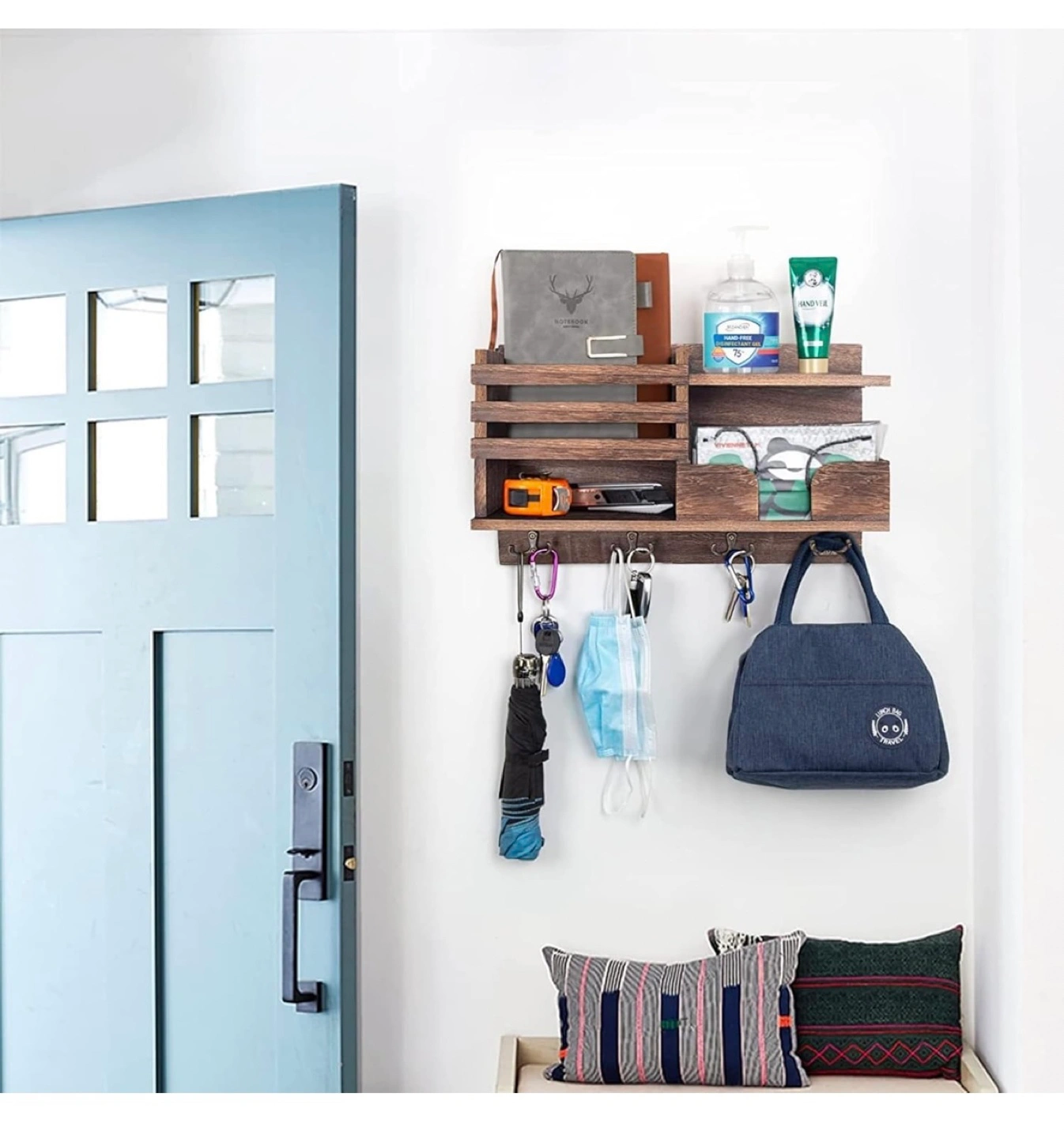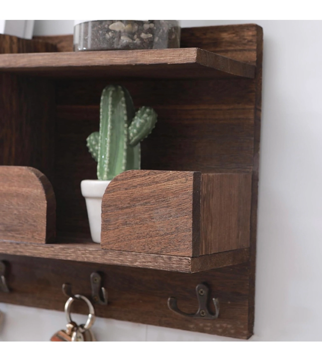 Rustic Wooden Wall-Mounted Organizer with Key Hooks