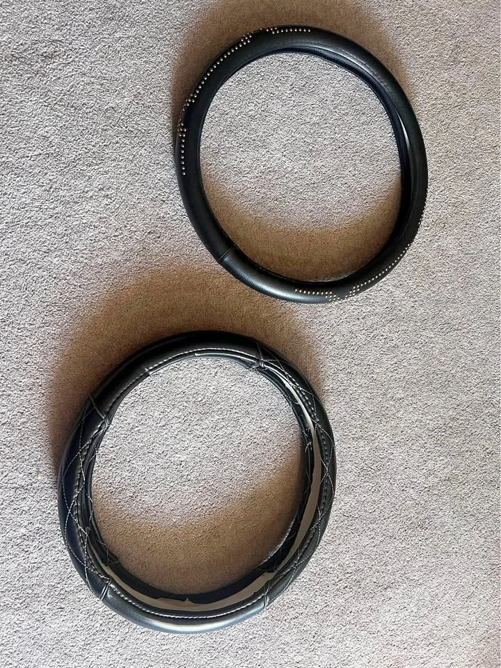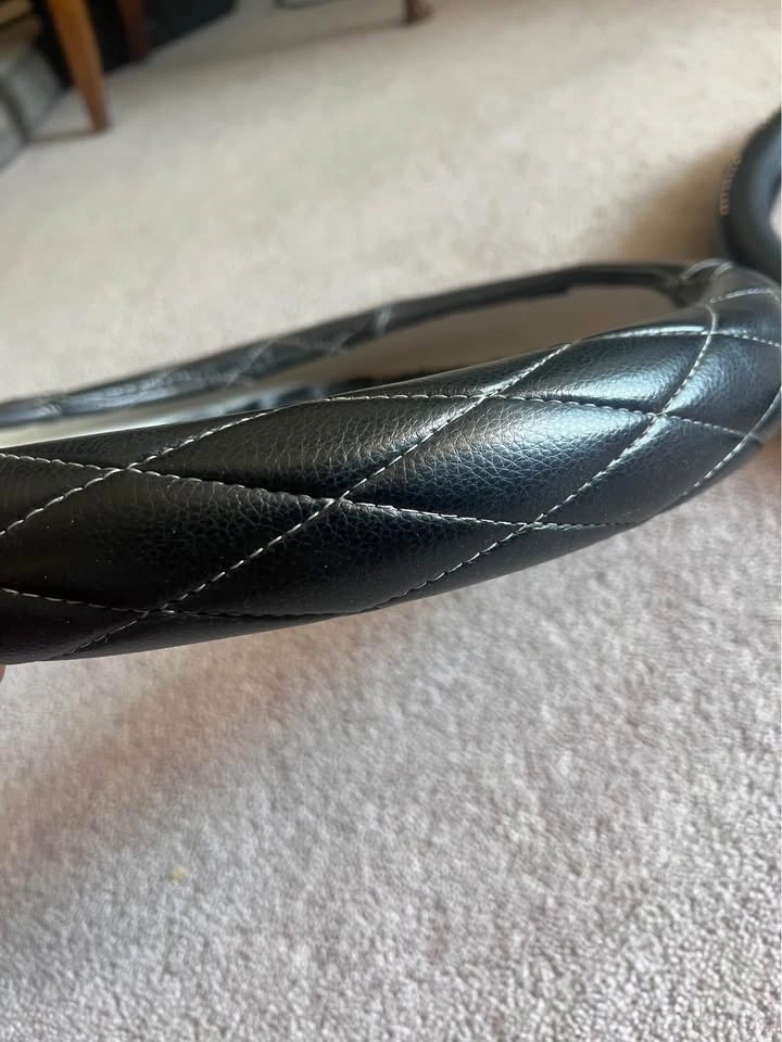 Cover 1: black leather quilted and padded. It’s very comfortable. $10