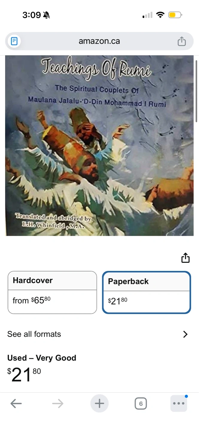 This is the Masnavi I Ma'Nani, Teachings of Rumi, translated and abridged by E.H. Whinfield, M.A. It contains "The Spiritual Couplets" of Maulana Jalalu-'-Din Mohammad I Rumi. The book is in paperback format.