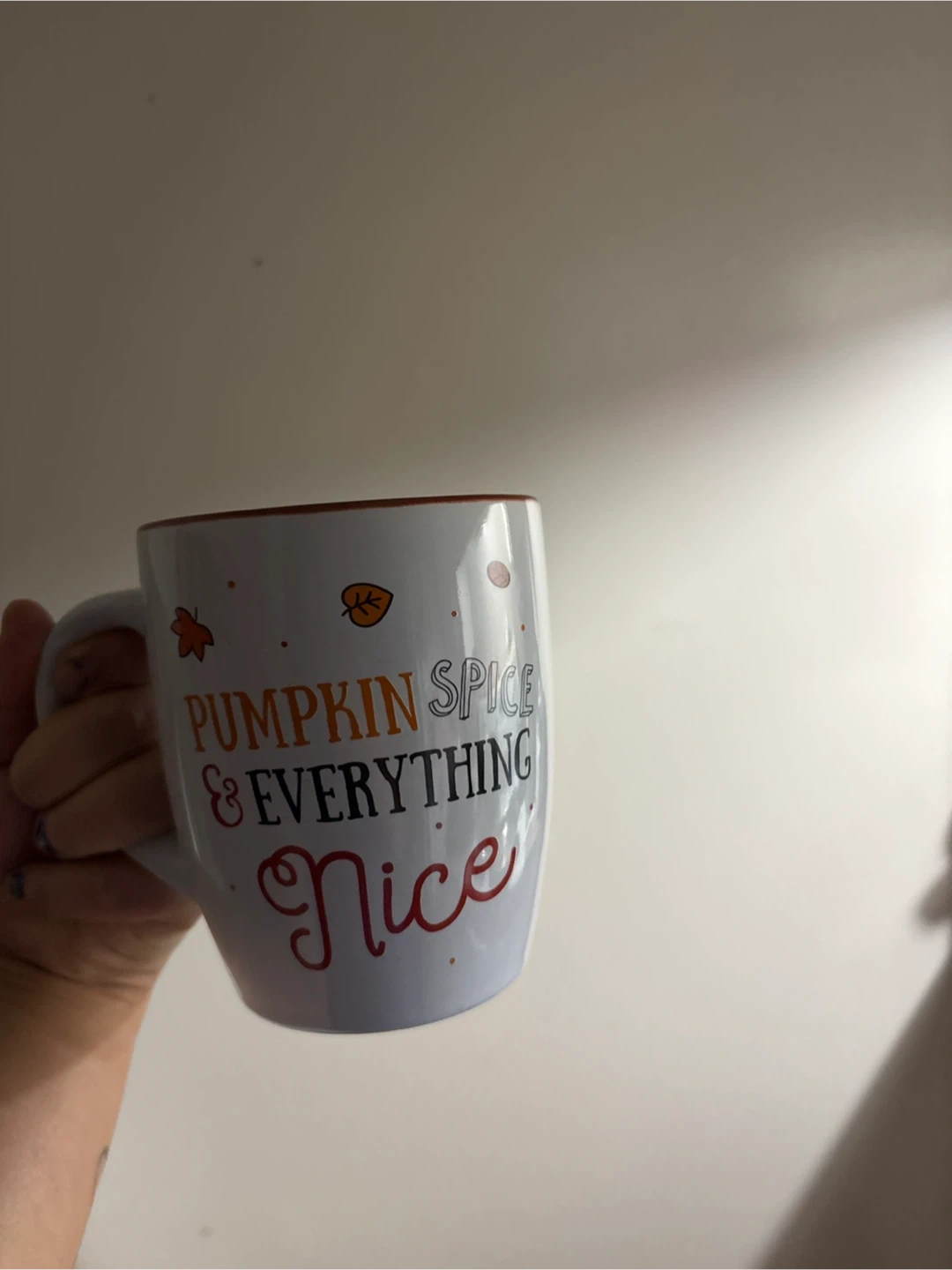 This mug features Hello Kitty and the phrase 'Pumpkin Spice & Everything Nice'. It's perfect for enjoying your favourite warm beverage this fall! Dishwasher and microwave safe.