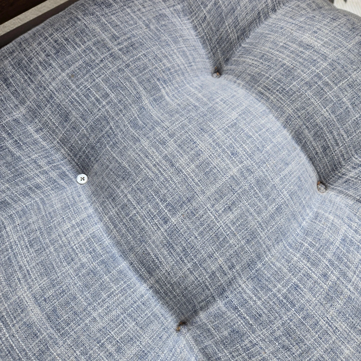 Also comes with 2 Martha Stuart large outdoor seat cushions. 1 string of the cushion was detached. Its still there if u want to sew it on. 1 button on the cushion went missing so a new button was sewn in.