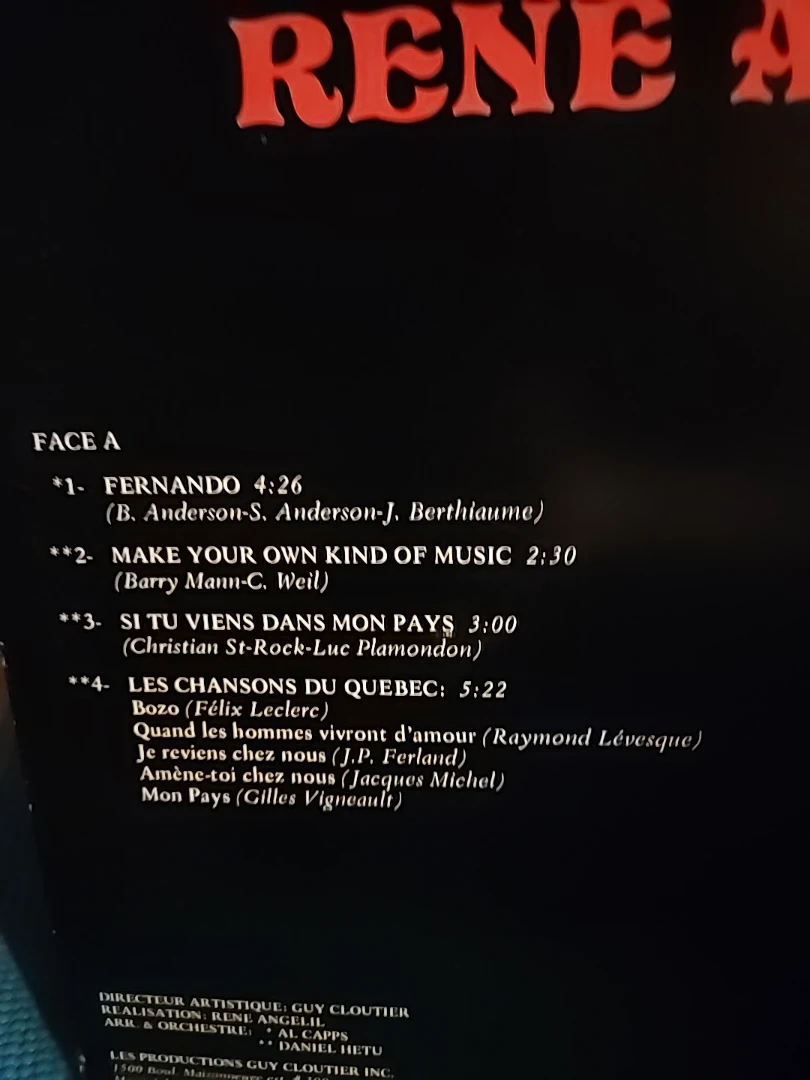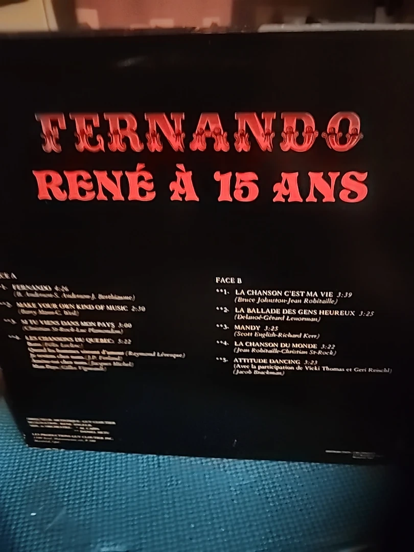 This is the vinyl record 'Fernando Rene A 15 Ans'. It features songs like 'Fernando' and 'Make Your Own Kind of Music'. This album showcases Rene at 15 years old.