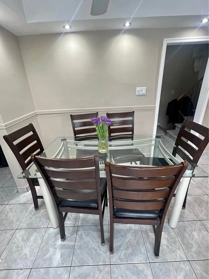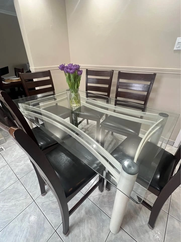 This stunning glass table perfect for hosting dinner parties and special occasions.