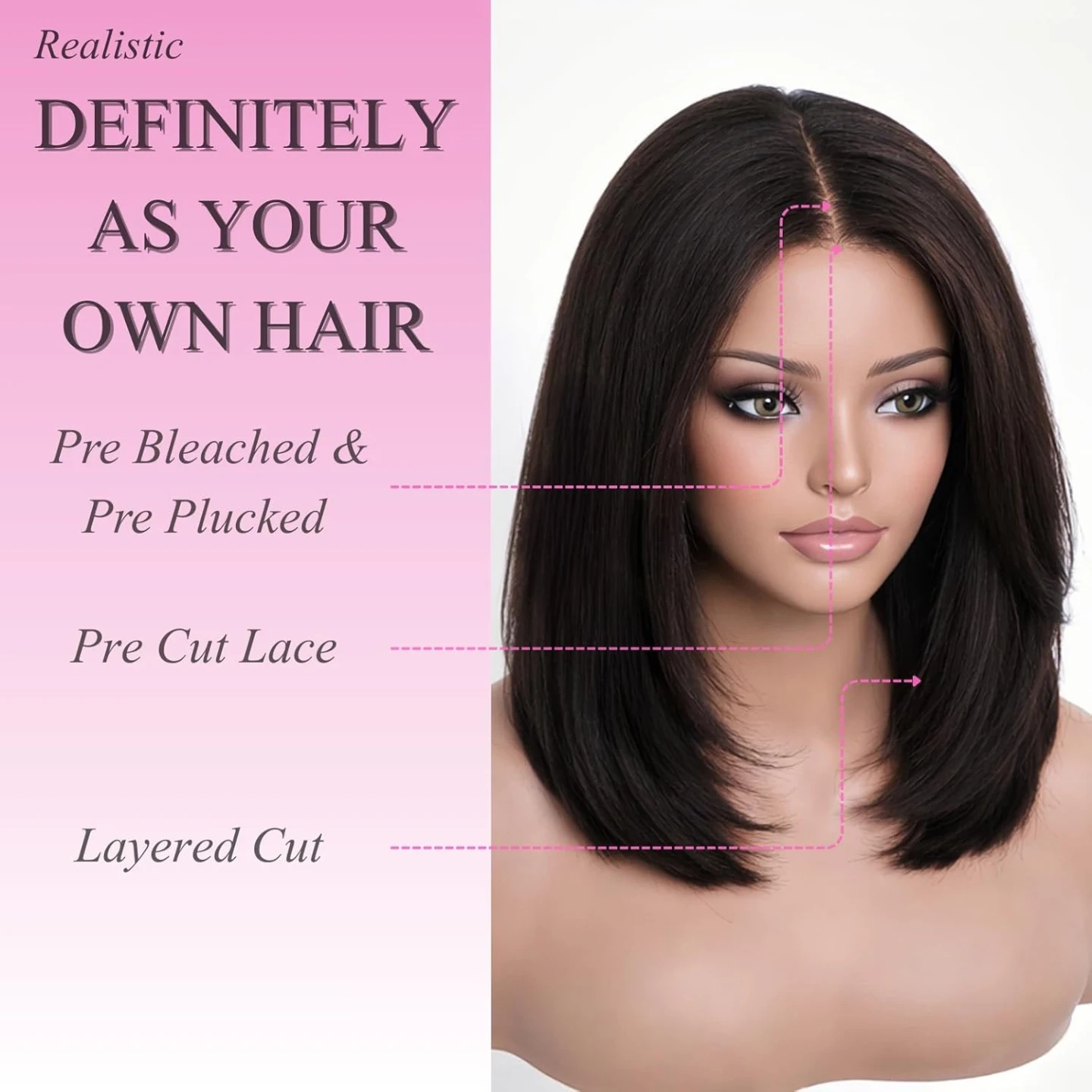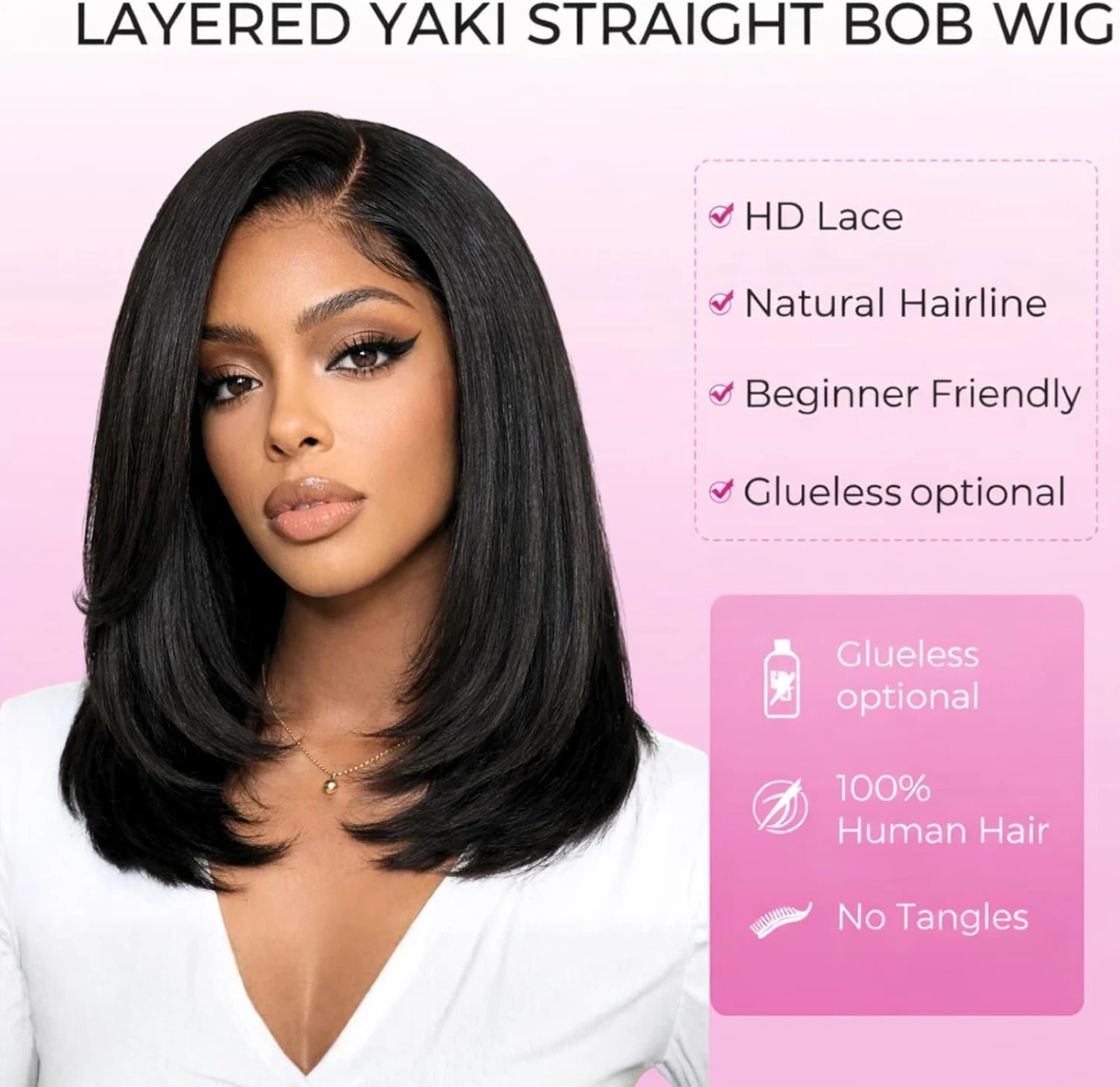 Glueless Layered Cut Yaki Straight Short Bob Wig with Drawstring 180% Density Pre-cut 5x5 HD Lace Human Hair Wigs with Bleached Knots Pre Plucked Natural Hairline 14 Inch, Brand New in the Box/Sealed