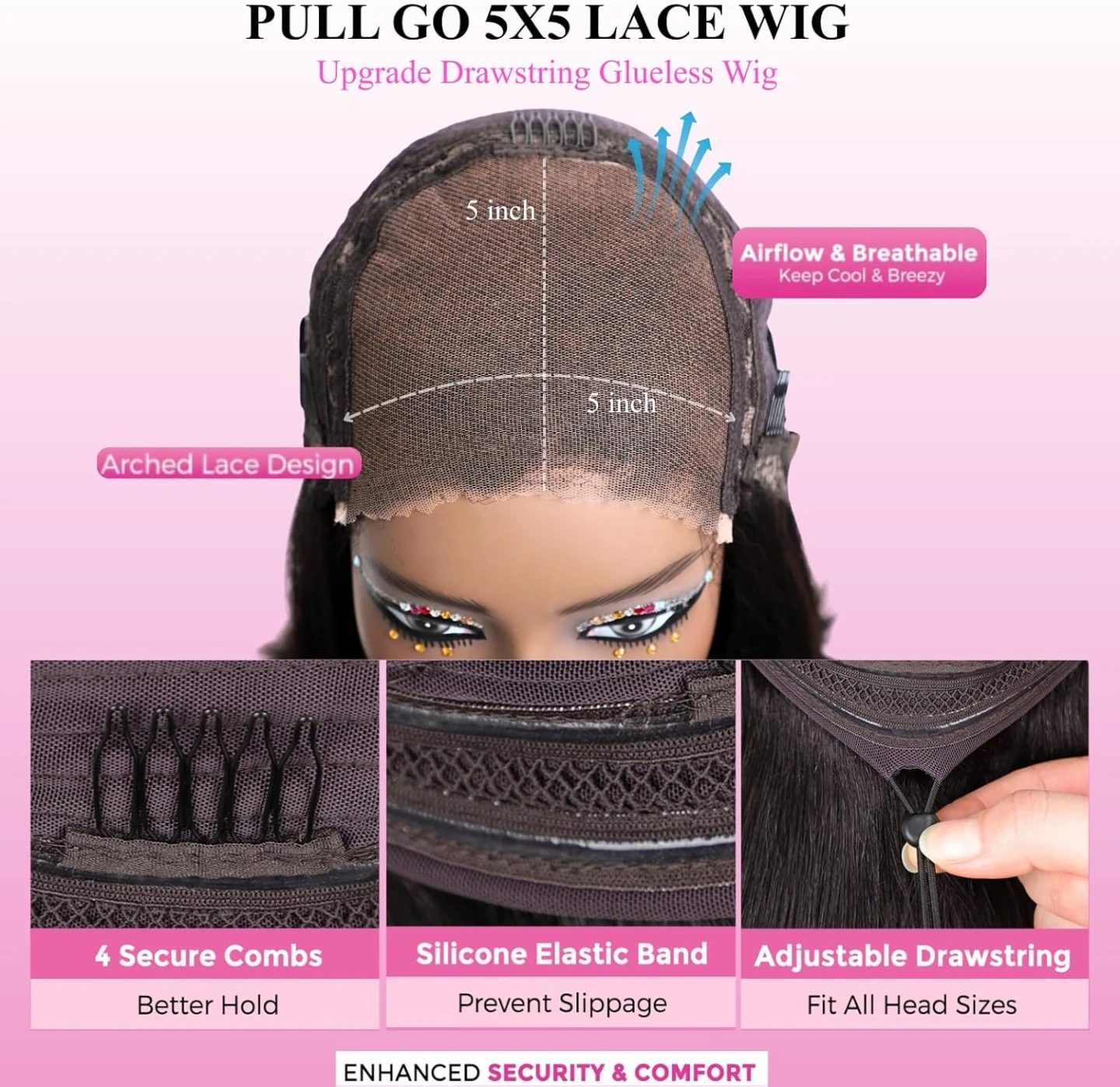 【Upgrade Glueless Drawstring Design】5x5 Layered Cut Yaki Straight Bob Drawstring Wig Human Hair with a Adjust Drawstring. Can be Adjusted to Fit Most Head Sizes Securely. Aaverage cap size(18''-24''). Make Gluess Wig Human Hair Install in 3s. Perfect for Those Who Want a Quick Install. And Head Comfortable & Security All Day.