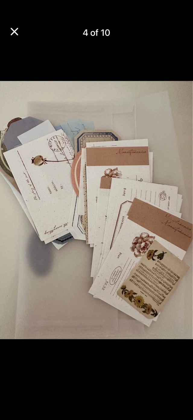 Imported from Pretty Happy Paperie in Indonesia. Beautiful minimalist journaling supplies. Filled with curated crafting & journal items. Envelopes contain more items: vintage papers, labels, beautiful fabrics, stickers, rub-on transfers, washi tape, and doilies. Gorgeous pastel colours. New condition. Cashless payment accepted. Cash accepted. Curbside pickup available.