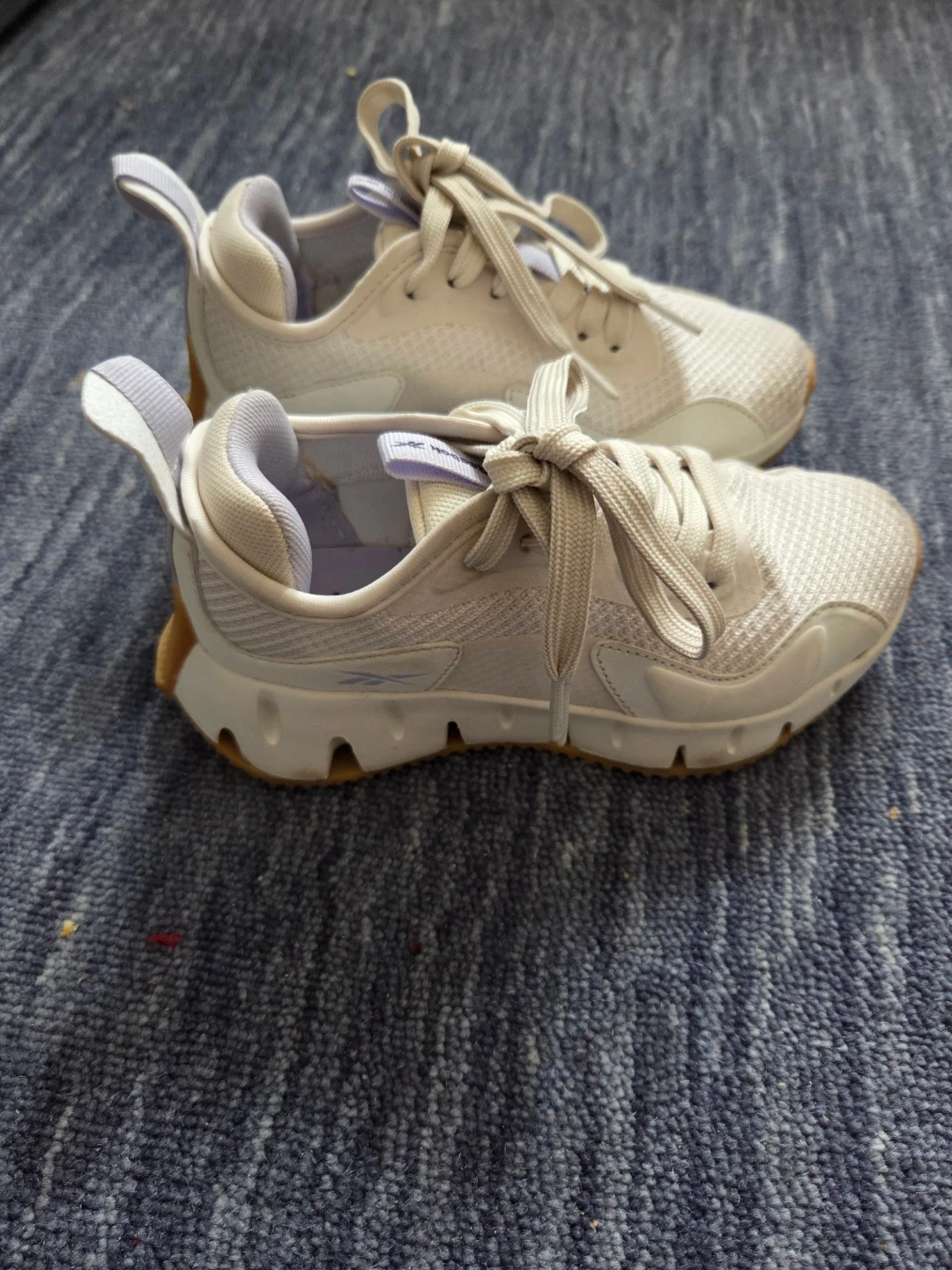 Selling a clean pair of Reebok Zig Dynamica sneakers in boy/girl Size 13. These feature the iconic zigzag energy-return sole and a sharp white-on-tan (gum) colorway that’s easy to style.