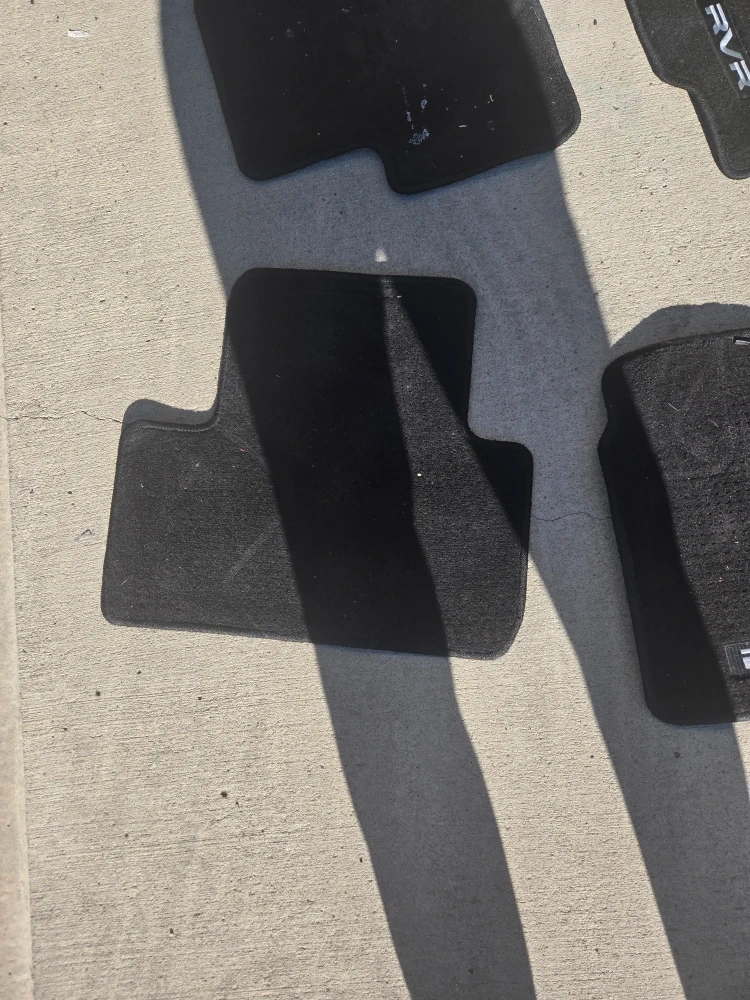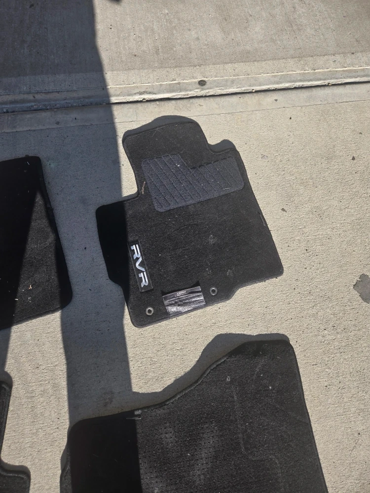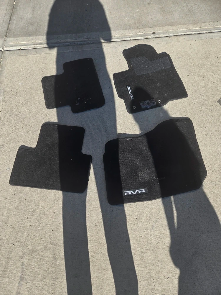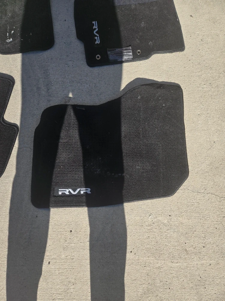 14Selling a set of four black floor mats with the 'RVR' logo. They show some signs of use, but are still in good condition and ready to protect your car's interior from dirt and wear