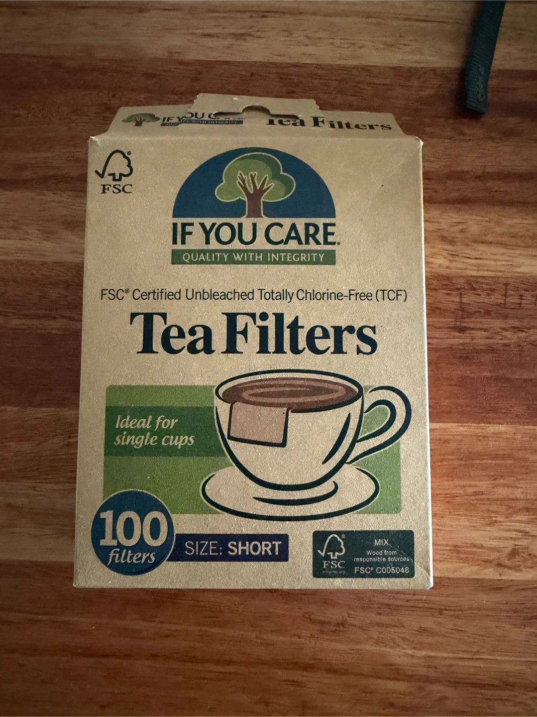 IF YOU CARE offers unbleached, totally chlorine-free (TCF) tea filters. These filters are made from FSC-certified paper and are suitable for single cups. The package contains 100 filters in a short size. Barely used any.