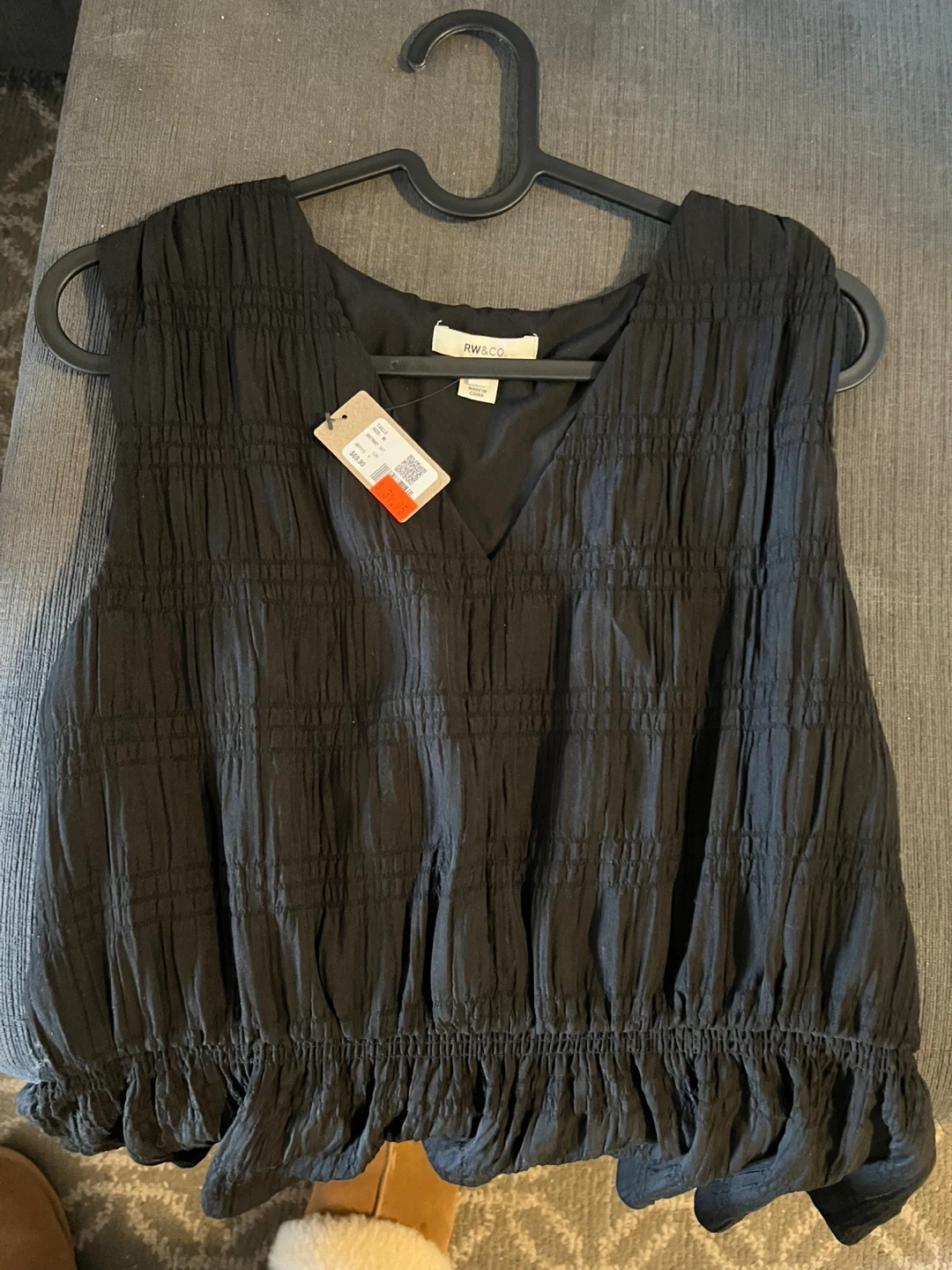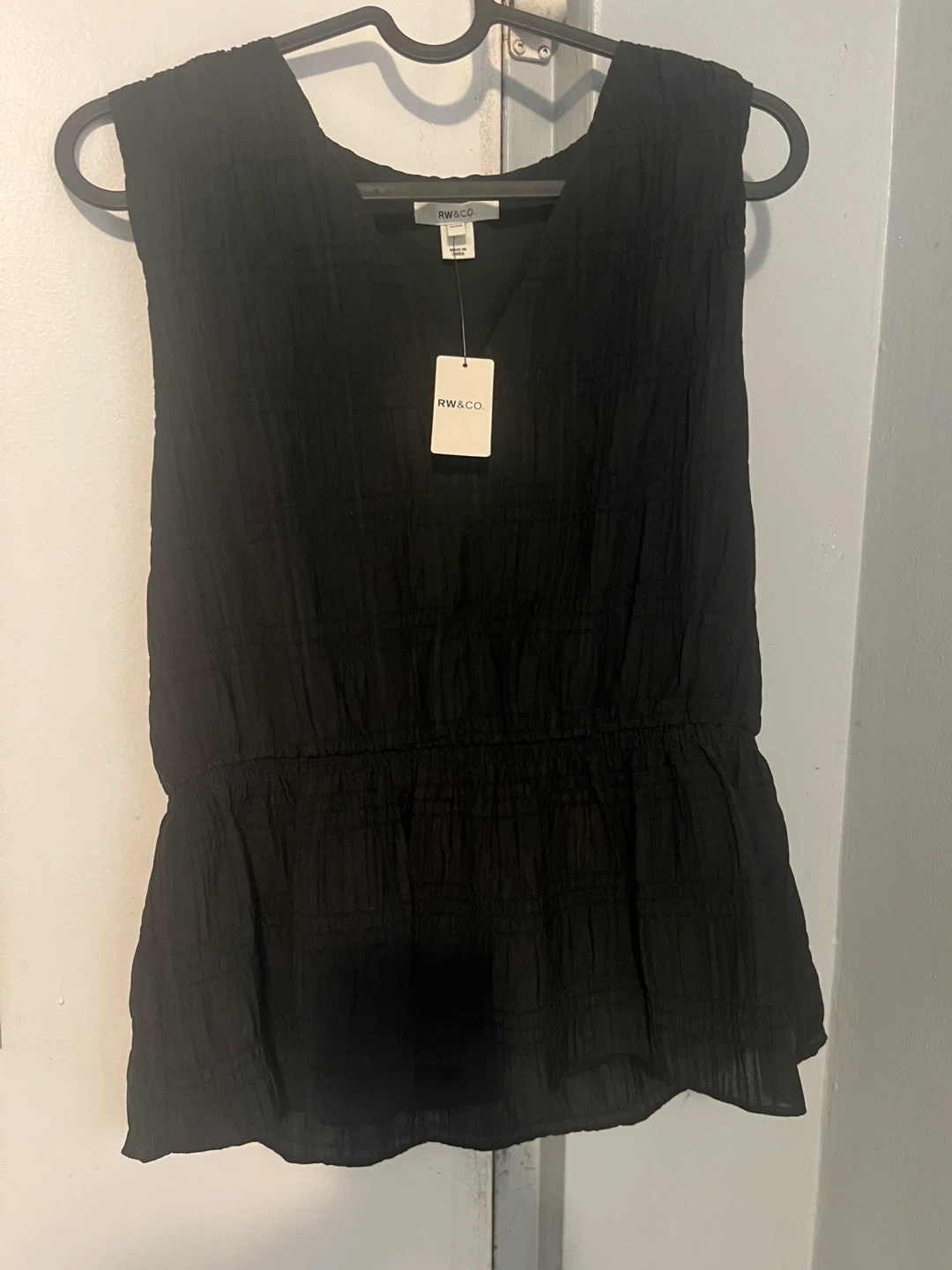 269Selling a brand new with tags RW&CO. black sleeveless top in size medium. The original price was $69.90! Paid 34.95 selling for $15