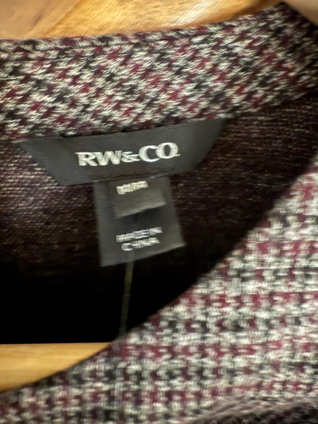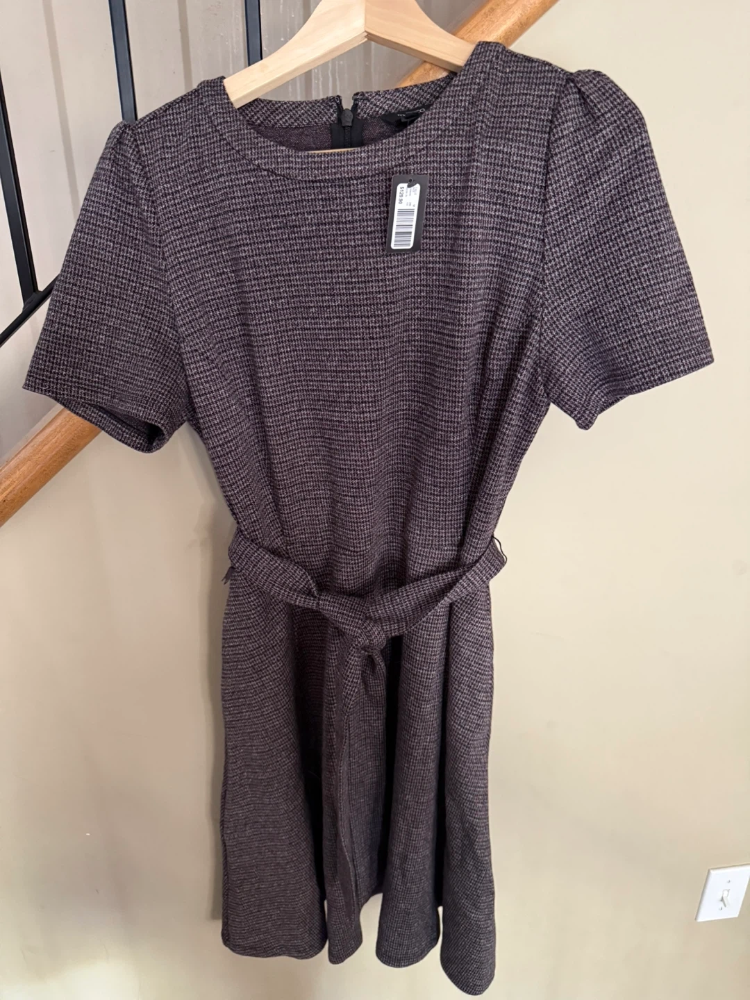 This RW&CO dress is in great condition and features a stylish belt to cinch the waist. It's a size medium and has a lovely pattern that's perfect for any occasion. The dress also has convenient pockets!