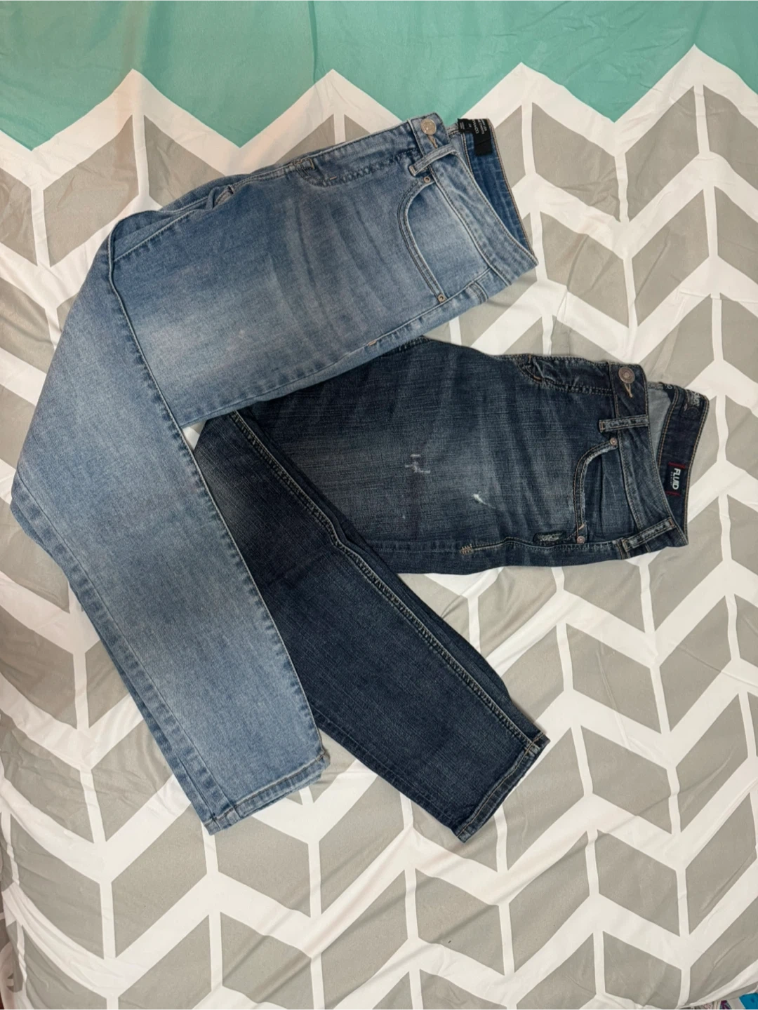 Two pairs of jeans up for grabs! One pair is from RW&CO., a skinny leg style in size 28. The other is Fluid Denim, in size 29. Both are in good condition and ready for a new home. $10 each or both for $15.