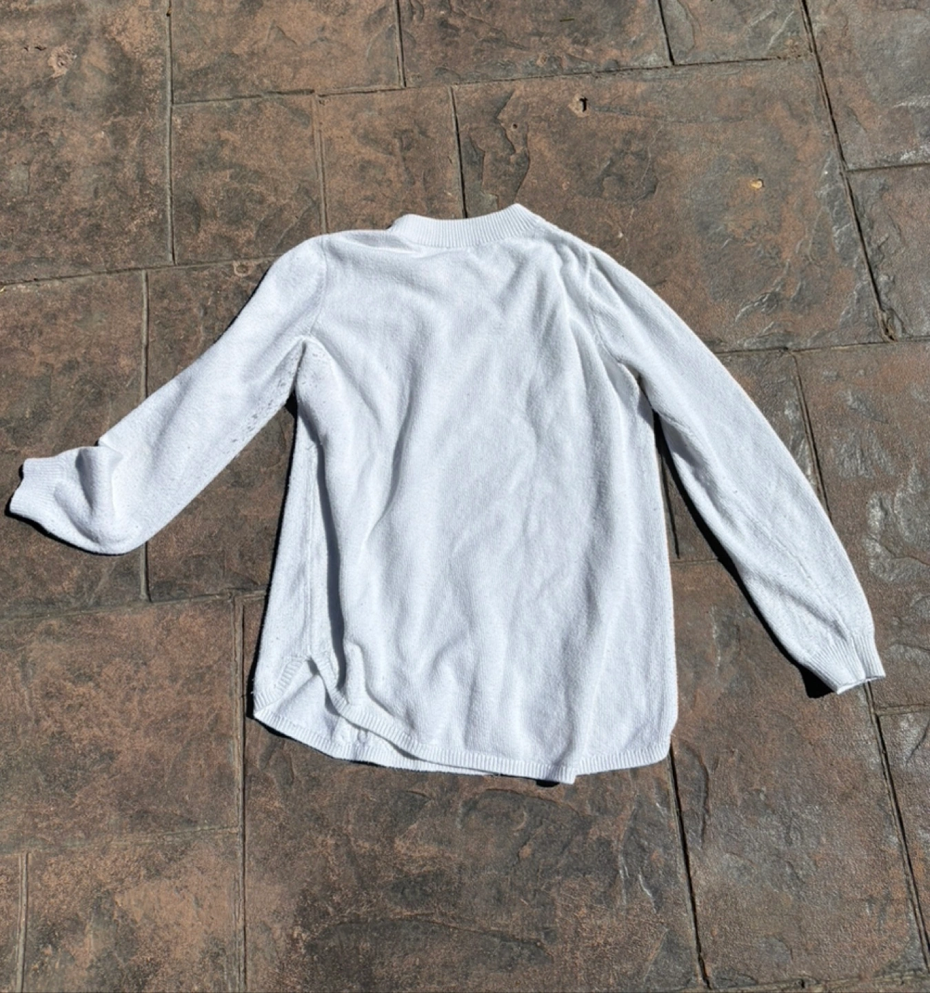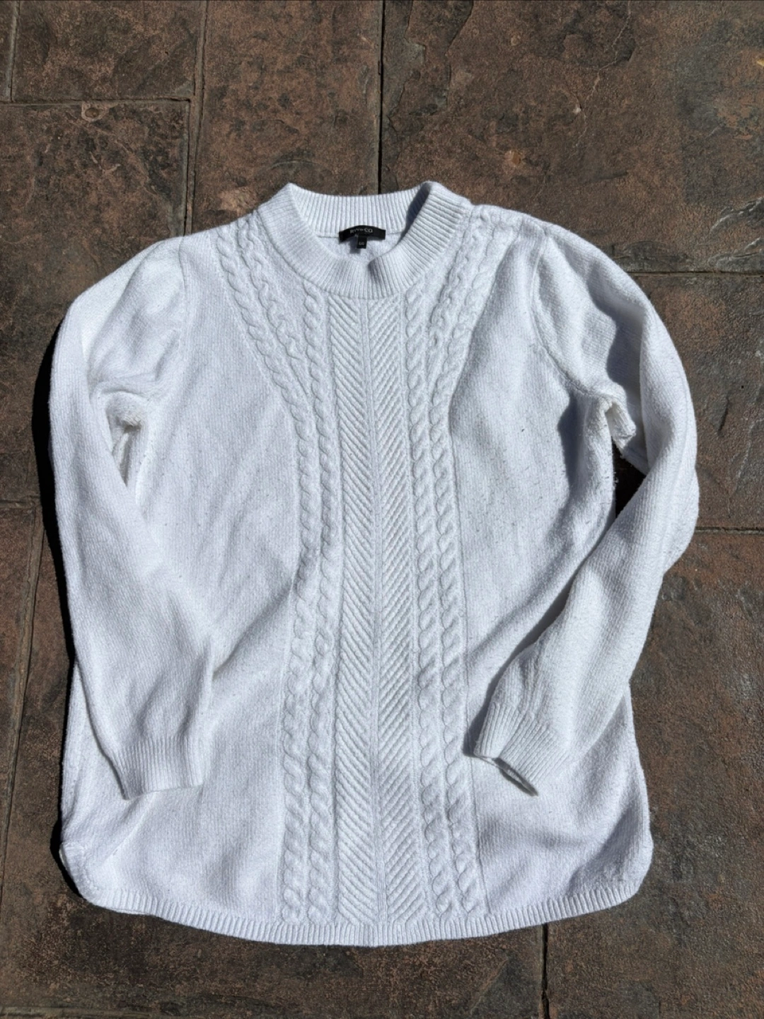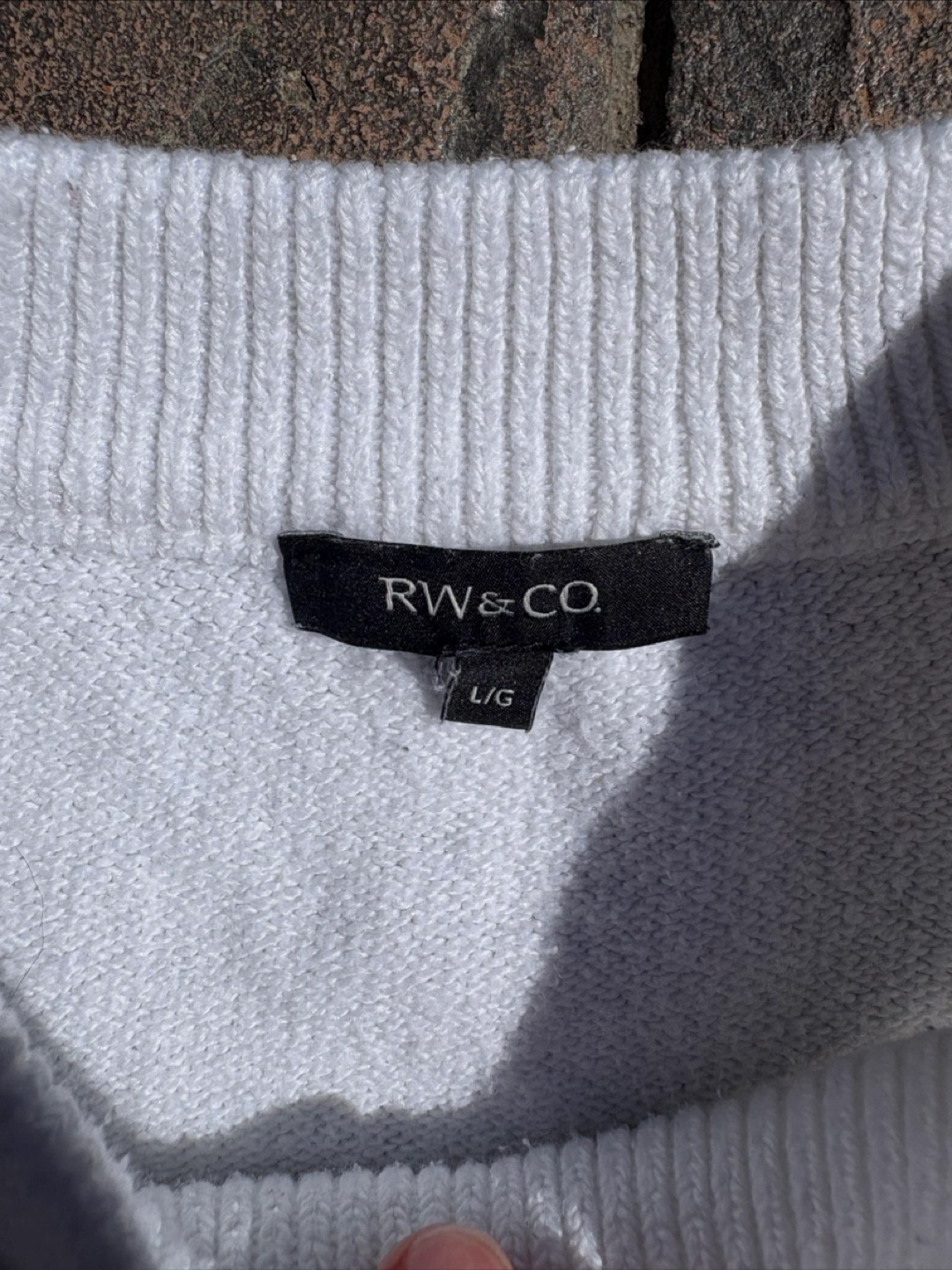20Cozy up in this lovely white cable knit sweater from RW&CO! It's a size large and in great condition. Perfect for layering or wearing on its own during those chilly Canadian days