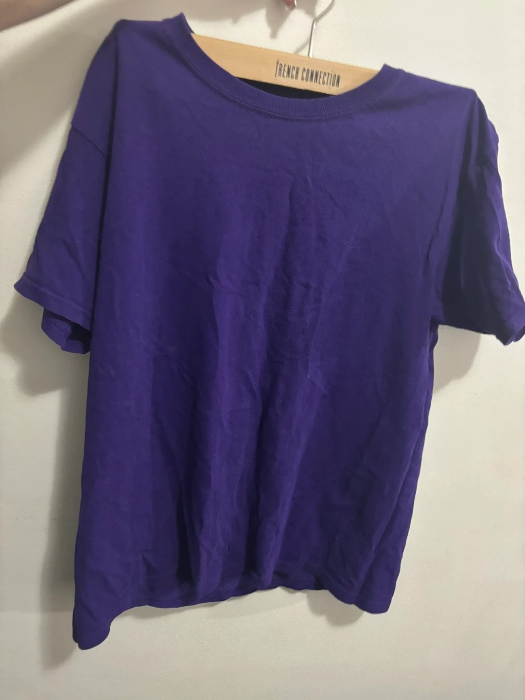 A simple purple t-shirt from French Connection. It's a crew neck, short-sleeve style. Cotton material.