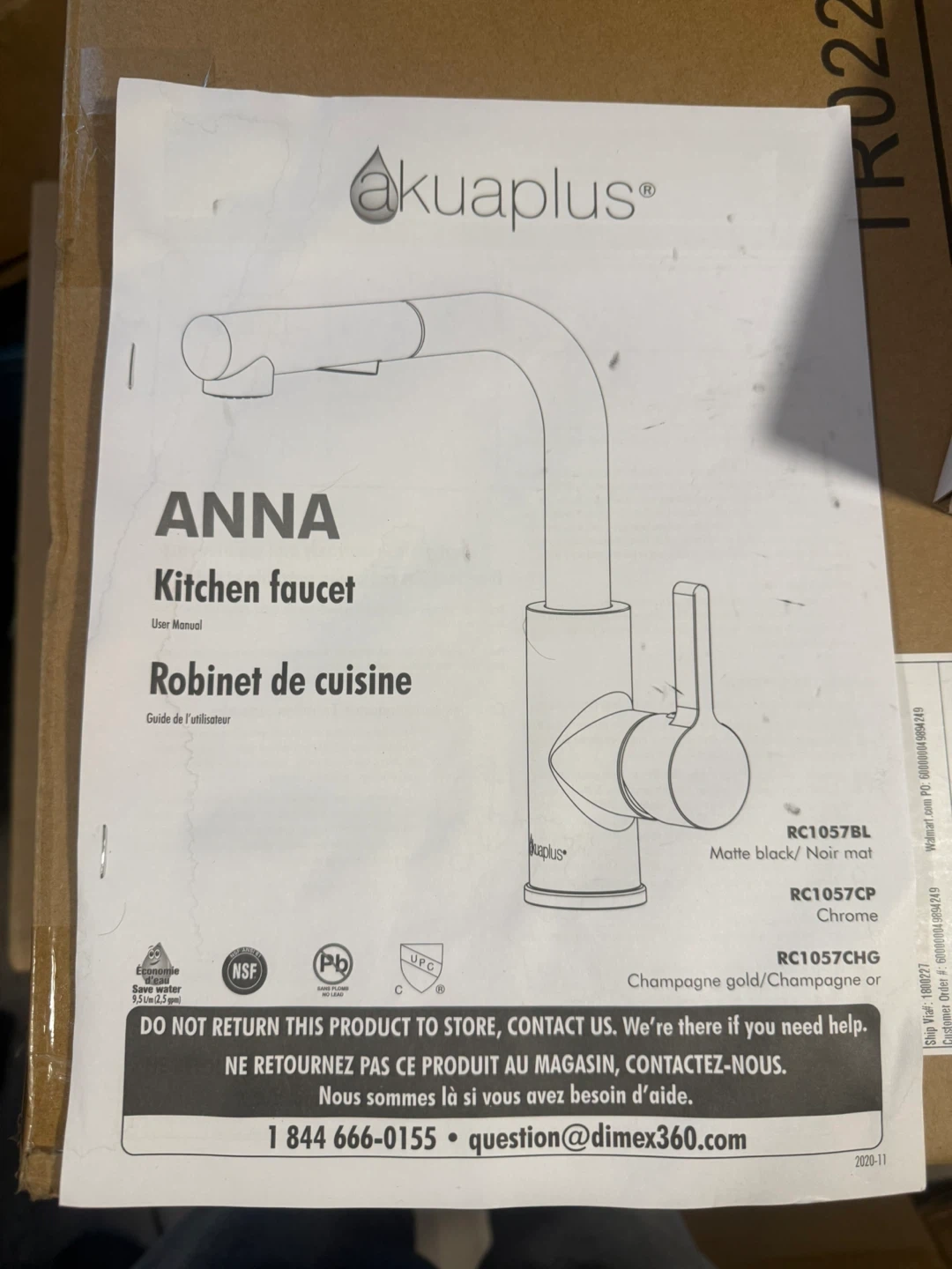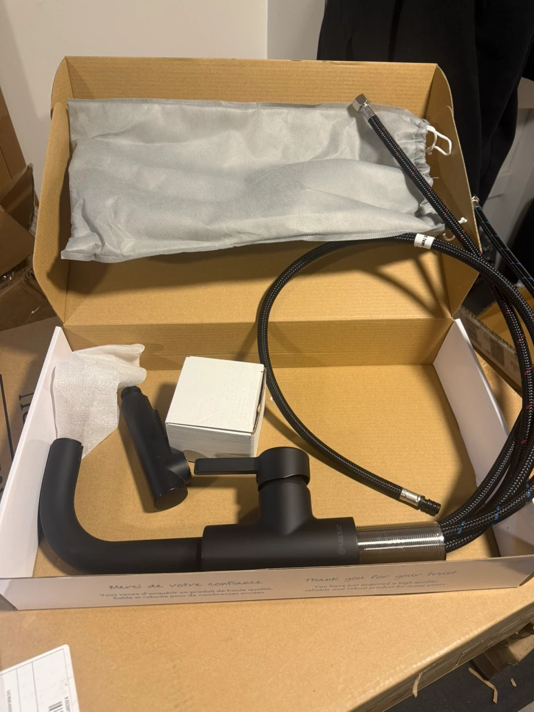 Akuaplus ANNA kitchen faucet in matte black/noir mat. Stainless steel material. Includes hoses and manual. This pull-down faucet is great for any kitchen sink!
