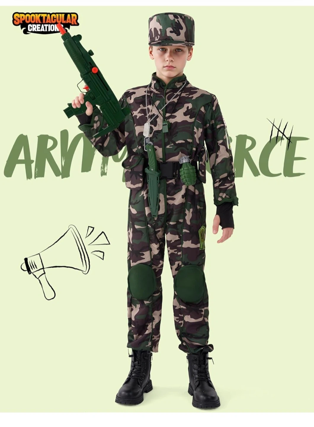 Get ready for action with this Army Force costume! It comes with everything your little soldier needs for imaginative play, including the jumpsuit, hat, and lots of fun accessories. Size M, perfect for kids aged 8-10 years (4'0"-4'7" / 122-140 cm).
