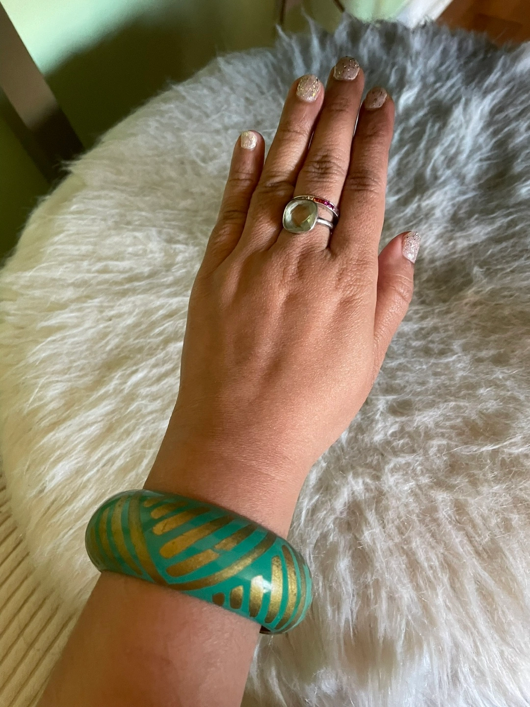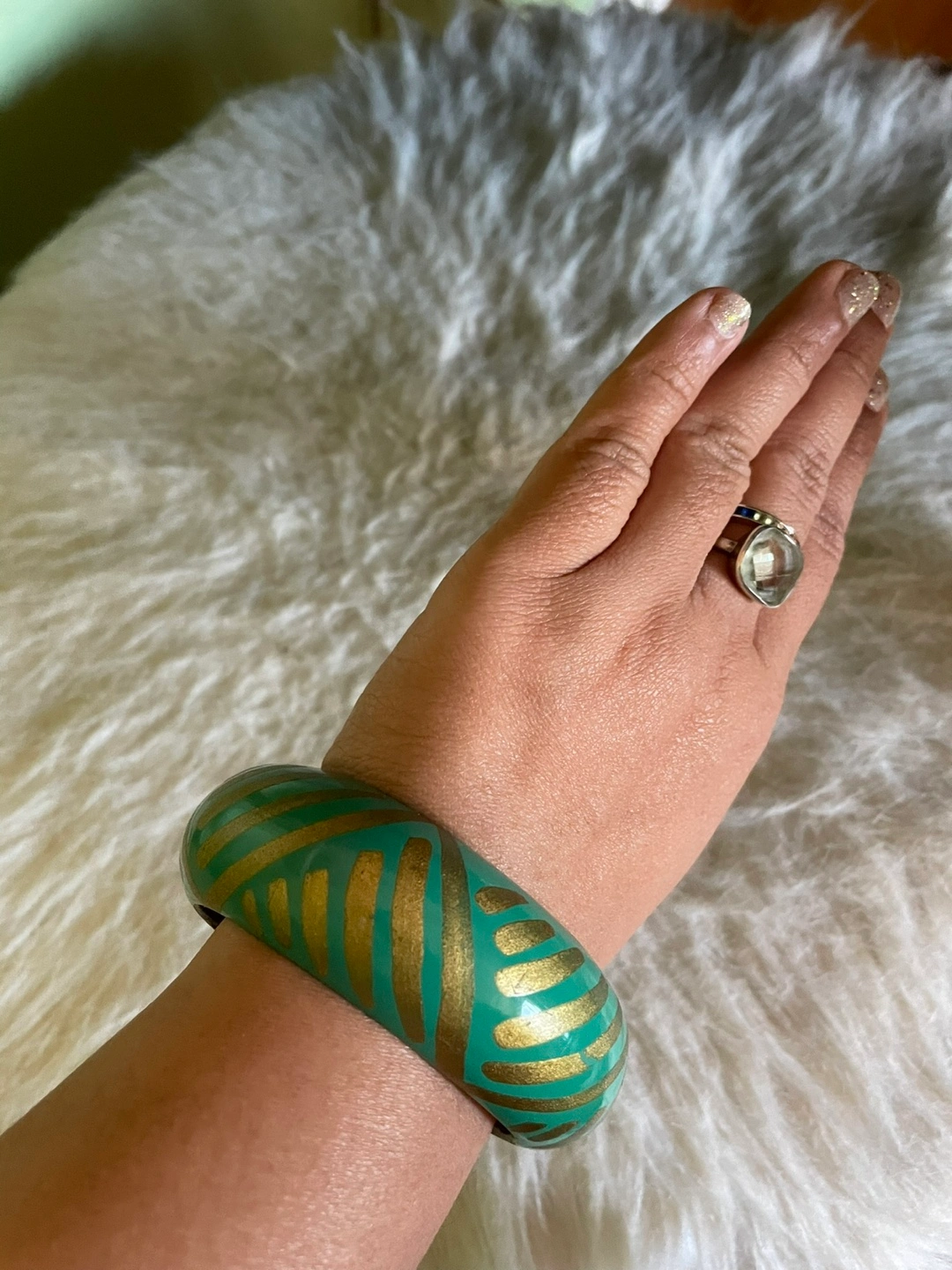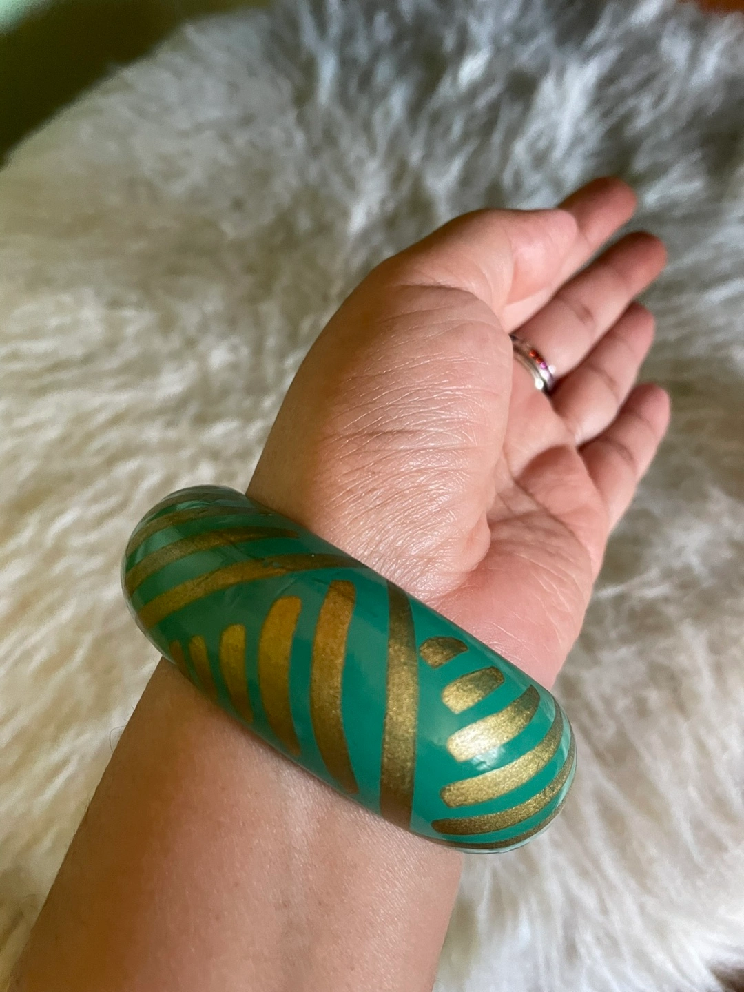 Teal and Gold Bangle Bracelet