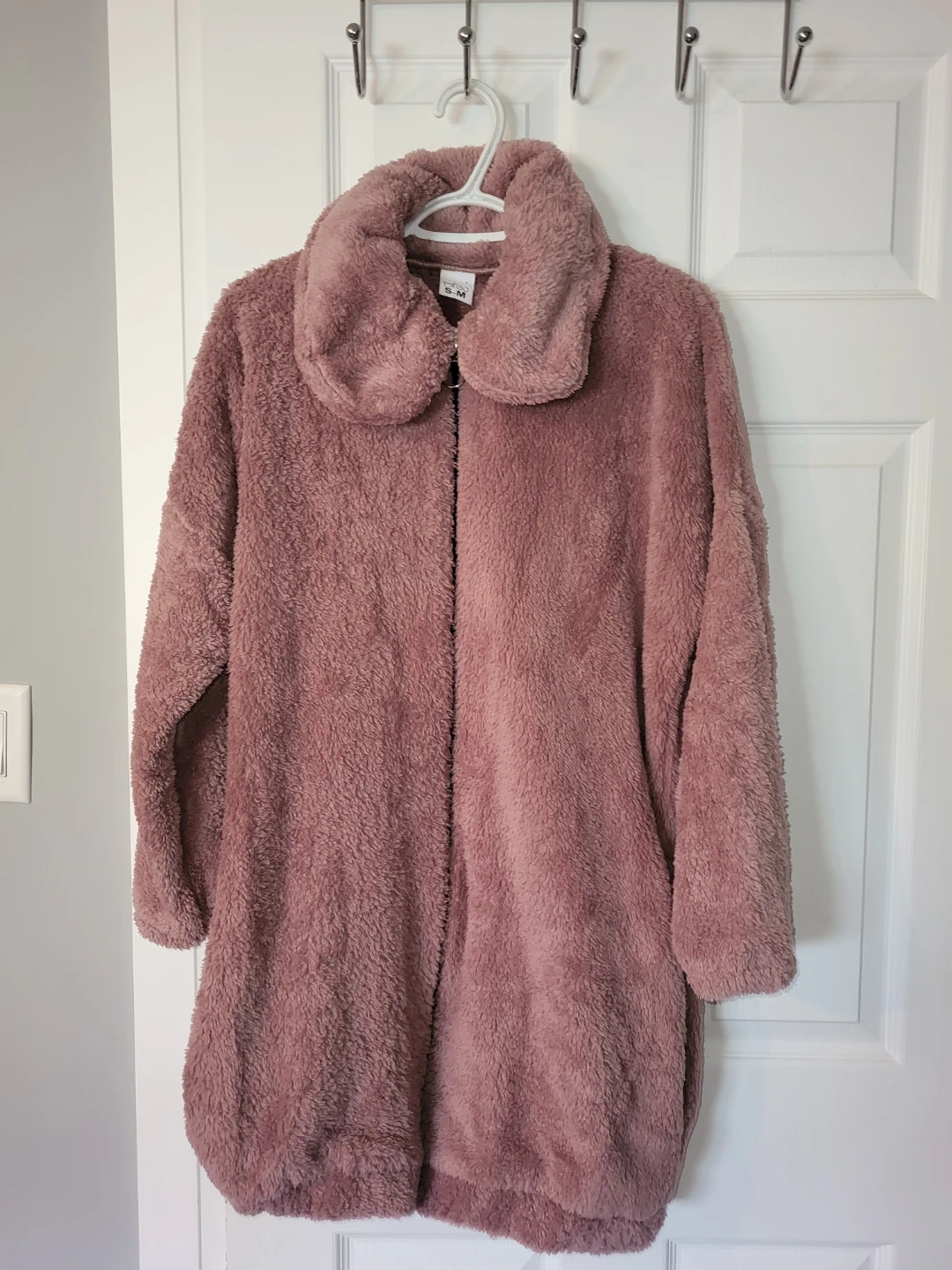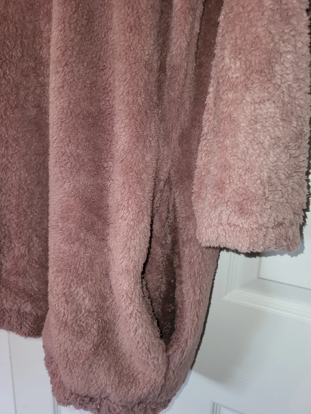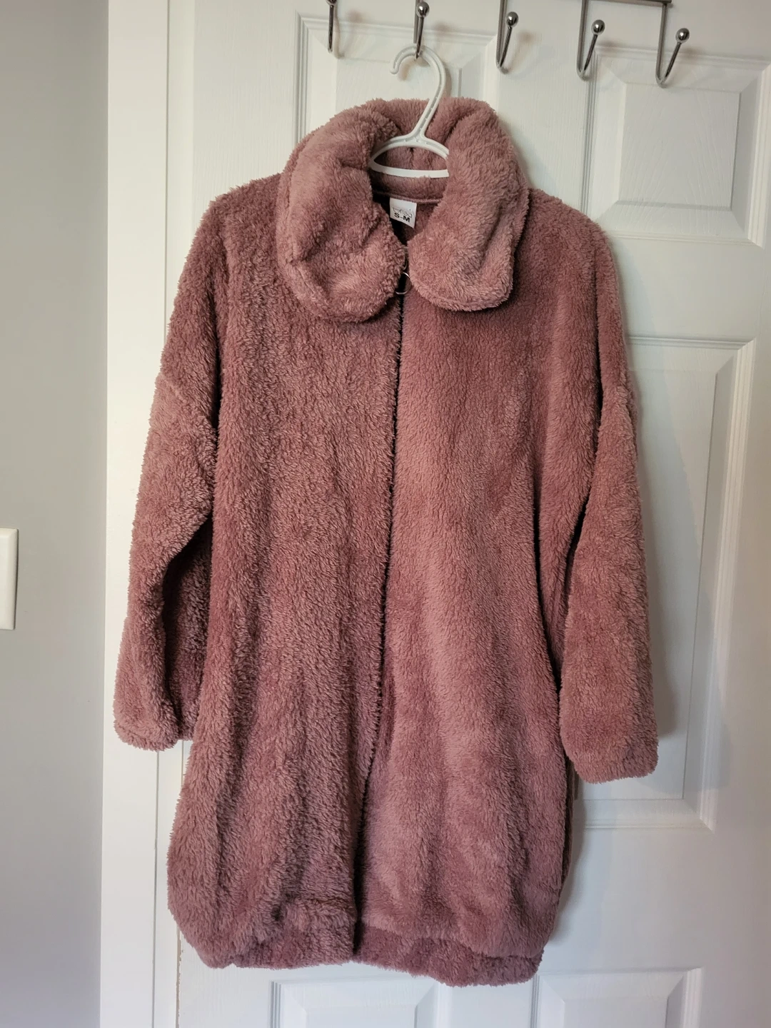 Cozy pink sherpa fleece coat. It has a large collar and two front pockets. Made with a soft, plush material for warmth. Size is S/M. $35 firm.