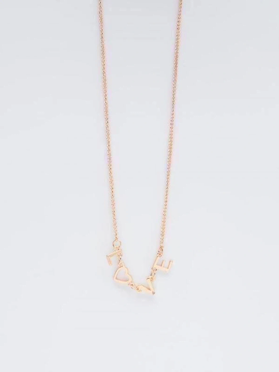Gold-tone chain necklace featuring a “LOVE” pendant with a heart replacing the “O” ❤️