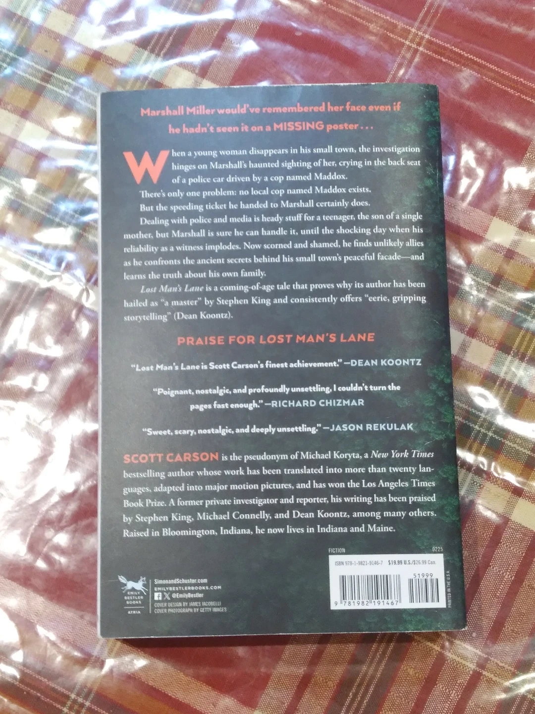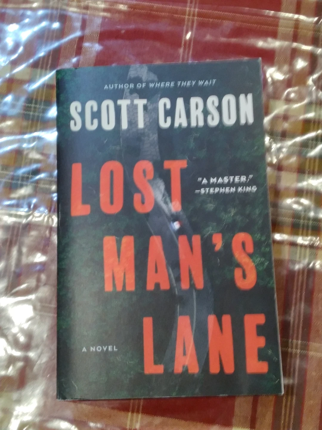 This is a novel titled Lost Man's Lane by Scott Carson. It's a crime thriller about a missing person investigation. The book features a gripping narrative and has received praise from Stephen King and Richard Chizmar.