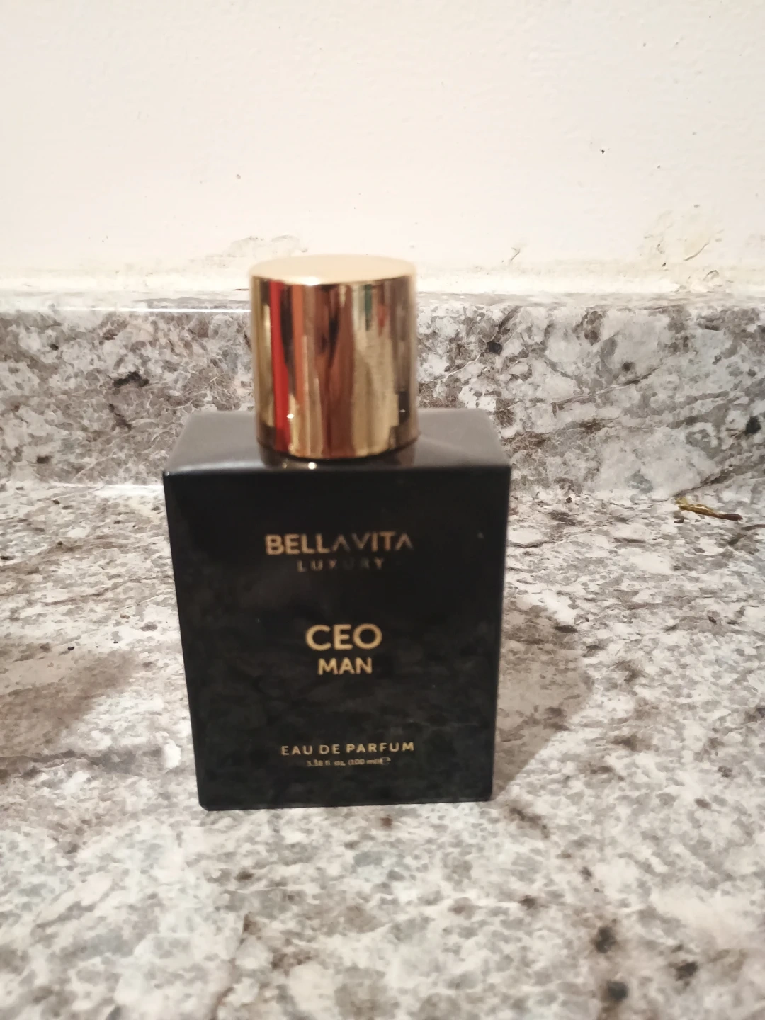 Bellavita Luxury CEO Man Eau de Parfum. 3.38 fl oz (100ml). A crisp and invigorating scent for men. This fragrance comes in a sleek black bottle with a gold cap.