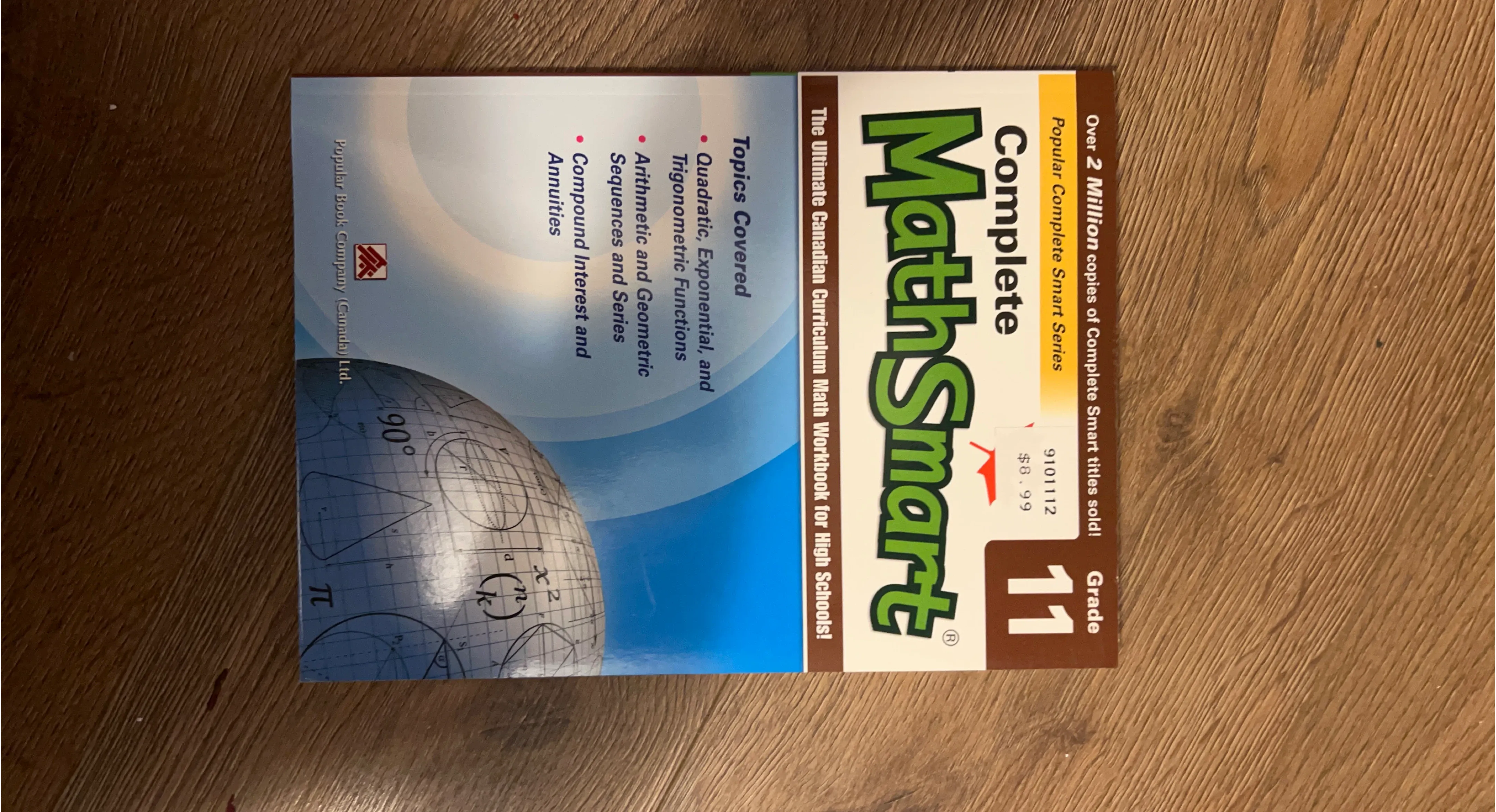 This is the Complete Math Smart Grade 11 Workbook for High Schools. It covers quadratic, exponential, and trigonometric functions, as well as arithmetic and geometric sequences and series. It also includes topics on compound interest and annuities. This workbook is from Popular Book Company (Canada) Ltd. It's a great resource for students studying advanced math.